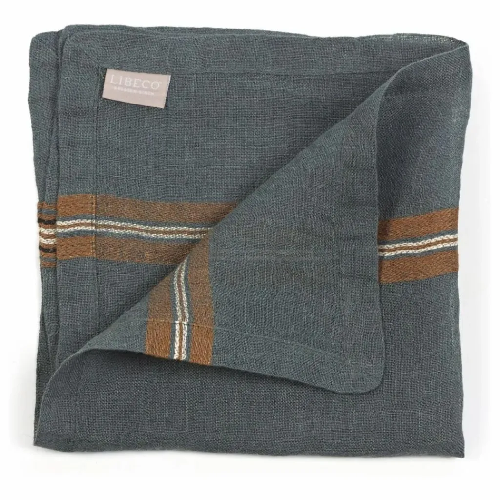 Kea, île des Cyclades, donne son nom à cette serviette de table au fond vert River, éclairci par deux rayures distinctes.