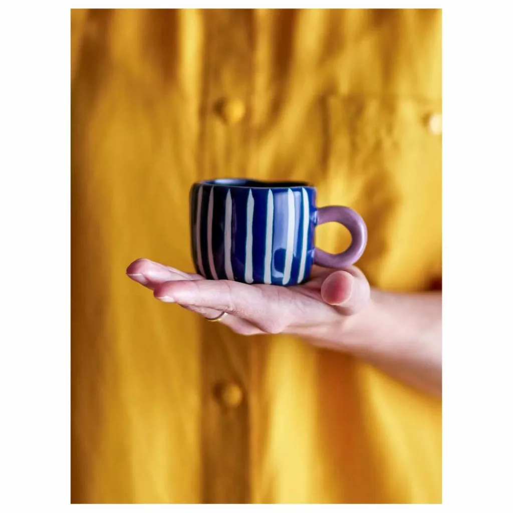 - La Tasse Nini de Bloomingville est fabriquée en grès et présente un motif mignon peint à la main. La tasse est décorée de fines rayures bleues et blanches, avec une anse en rose profond. Son design unique la rend idéale pour être combinée avec d’autres tasses afin de créer une collection amusante et décorative. Cette charmante tasse est parfaite pour être exposée sur une étagère à tasses dans la cuisine lorsqu’elle n’est pas utilisée. Les détails peints à la main rendent chaque tasse unique.