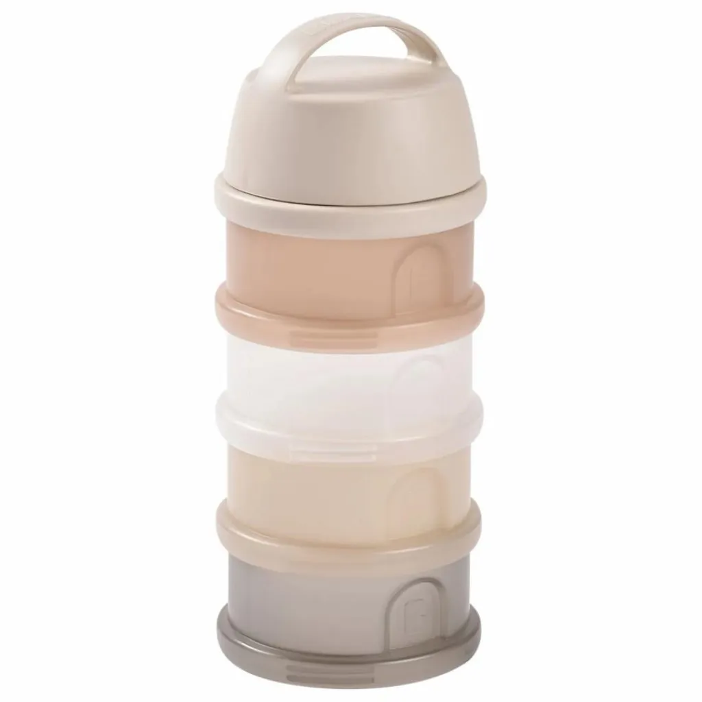 Cette boîte doseuse est modulable avec ses 4 compartiments empilables et interchangeables. Les compartiments peuvent être utilisés ensemble ou séparément selon les besoins. Idéale pour les sorties et les voyages, elle est solide, peu encombrante et 100% hermétique, ce qui permet de protéger les doses de lait en poudre sans risque de fuite.
