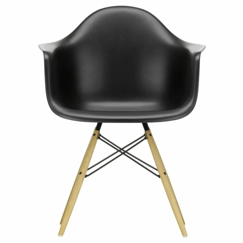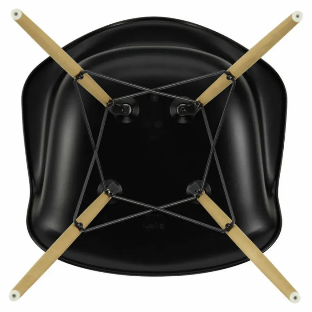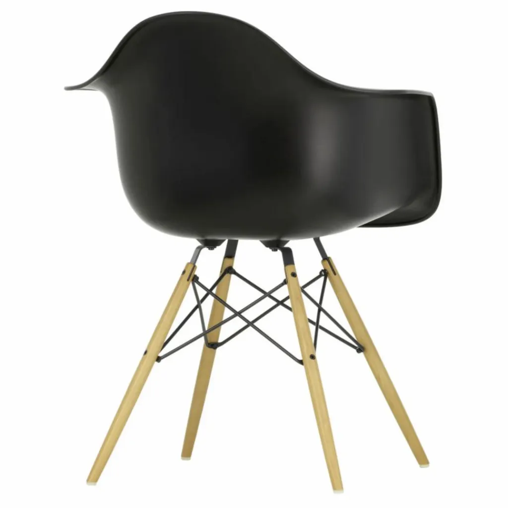 La chaise DAW (Dining Height Armchair Wood Base), conçue par Charles et Ray Eames, est un exemple emblématique d’un siège dont la coque peut être associée à différents types de piètements. Son piètement en bois crée un contraste intéressant avec la coque en plastique recyclé post-consommation. Cette combinaison de matériaux offre non seulement un aspect visuel attrayant, mais elle contribue également à la durabilité de la chaise en utilisant des matériaux recyclés.