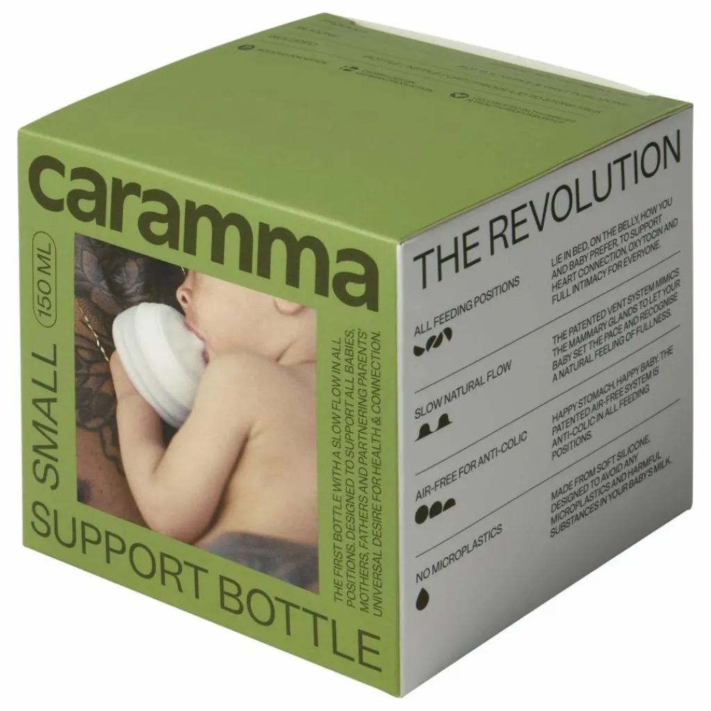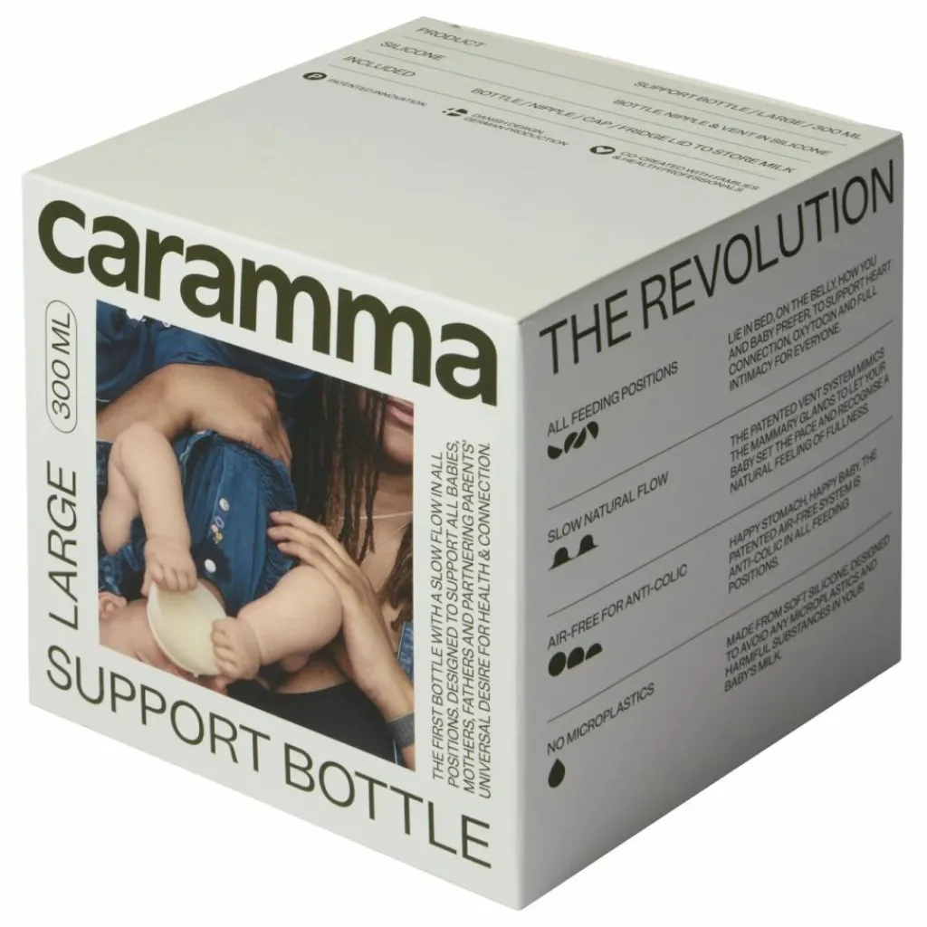 - Le Biberon de Soutien Caramma est le premier biberon au débit lent et naturel, utilisable dans toutes les positions d’allaitement. Co-créé avec des parents et des professionnels de santé, il se rapproche au plus près des qualités uniques du sein maternel. Son design innovant favorise le lien parent-bébé, la libération d’ocytocine et assure un confort digestif optimal grâce à son système anti-coliques breveté. Fabriqué en silicone pur et souple, il garantit une alimentation sans contact avec le plastique ou des substances nocives. Le biberon est également pliable, pratique pour le rangement et le transport. Disponible en petite et grande taille.
