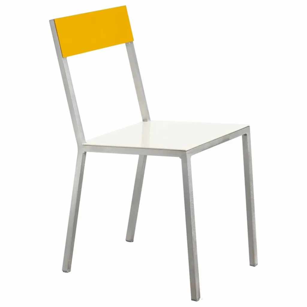 - Le couple de designers renommé Muller Van Severen a conçu sa chaise en alu en 2015 en tant que chaise d’extérieur pour le pavillon Bahreïn d’Anne Holtrop lors de l’exposition universelle de Milan. Depuis, elle est devenue l’un des modèles préférés des architectes et des amateurs de design qui ont un penchant pour le minimalisme ludique. Bien qu’elle ait été conçue à l’origine comme une chaise d’extérieur, nombreux sont ceux qui lui ont déjà trouvé une place à l’intérieur de leur maison. Le succès de cette chaise est dû à sa légèreté et à sa signature typique de Muller Van Severen. Les couleurs soigneusement sélectionnées sont appliquées à l’aide d’une laque protectrice contre les UV, afin de conserver leur éclat. Le cadre en aluminium non revêtu brille merveilleusement au soleil.