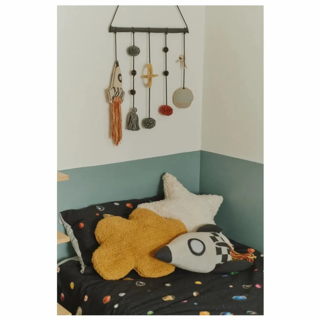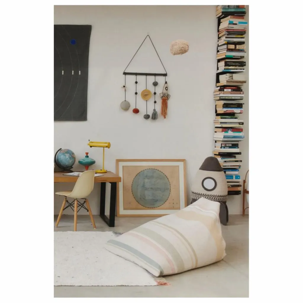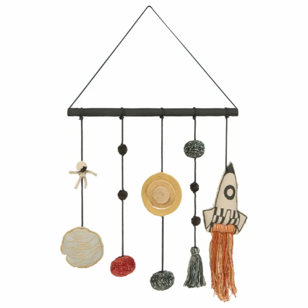 - Introduisez une aventure cosmique dans n’importe quelle pièce avec le cintre mural Cosmos. Cette décoration murale artisanale présente un charmant astronaute en corde, des orbites ludiques fabriquées à partir de cordons de coton, des planètes en textile avec de longues franges et des détails colorés partout.