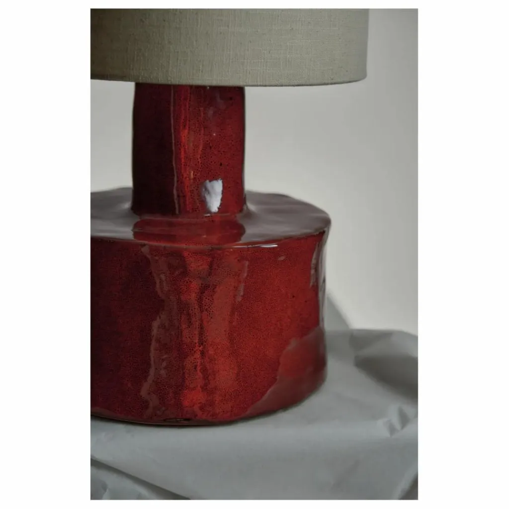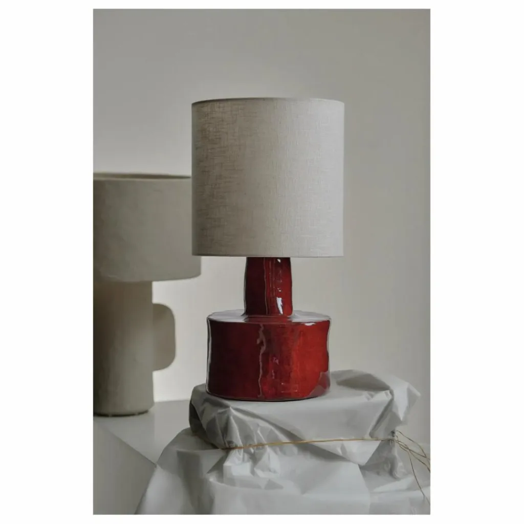 Cette jolie lampe est, pour Marie Michielssen, une source de chaleur et de confort. Même éteint, l’objet doit dégager quelque chose. Elle a donc choisi deux matériaux en fonction : la céramique pour le pied et le lin pour l’abat-jour.