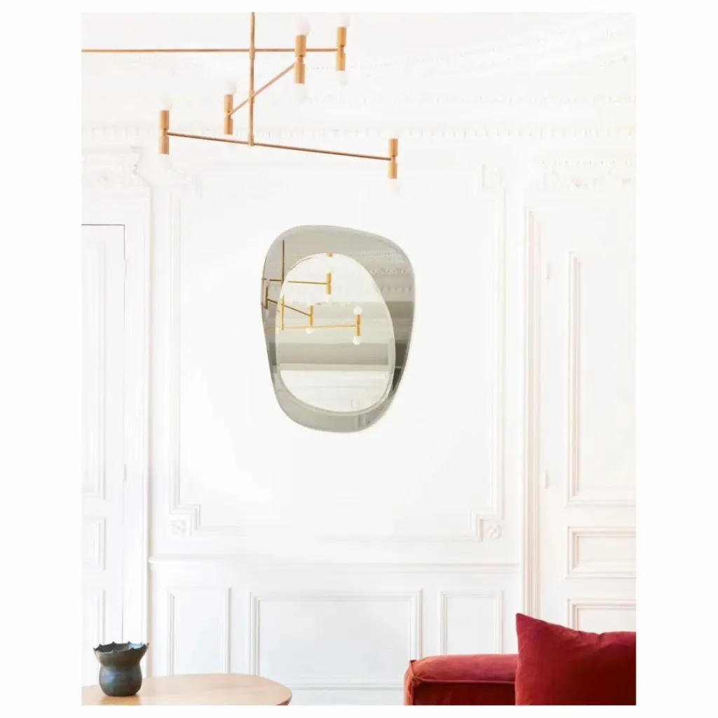 À mesure que la lumière s’adoucit, le miroir grisé s’assombrit, révélant un jeu de nuances et de reflets subtils, souligné par les deux biseaux irréguliers qui captent et dévient la lumière. Réalisé en verre 100% français, il est éco-responsable. Un miroir à double lecture, tout en contrastes feutrés et en profondeur, pour sublimer vos intérieurs avec poésie et caractère.