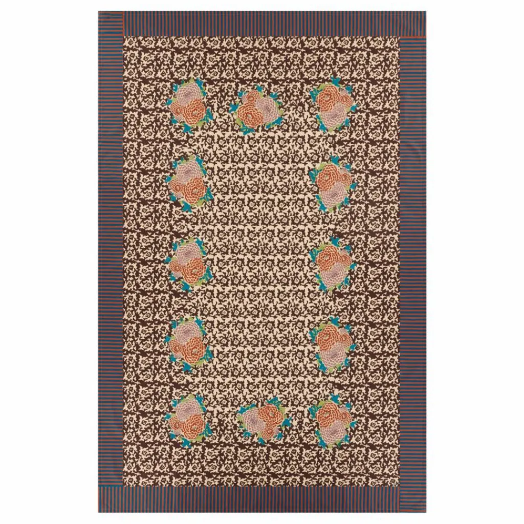 L’union de deux des motifs les plus emblématiques de Lisa Corti a donné naissance au motif Arabesque Corolla, où « Arabesque » provient d’un détail d’une miniature indienne : le motif décoratif de la veste d’un portrait de maharaja, retravaillé et transformé, conserve les proportions d’un dessin géométrique, qui sert de jardin à la fleur « corolla », qui est un bouquet de trois fleurs de Dahlia. Cette collection a demandé à Lisa Corti de se lancer dans une nouvelle technique d’impression très excitante. Cette technologie innovante est unique car le motif imprimé provient d’un prototype sculpté à la main par un héros, créé à l’aide de l’impression à la planche et fabriqué par des maîtres artisans en Inde, qui est ensuite copié sur du coton pur. Fabriquée exclusivement en Italie, cette nouvelle pratique à la fois artisanale et moderne incarne la fusion de l’héritage et de l’innovation de Lisa Corti.