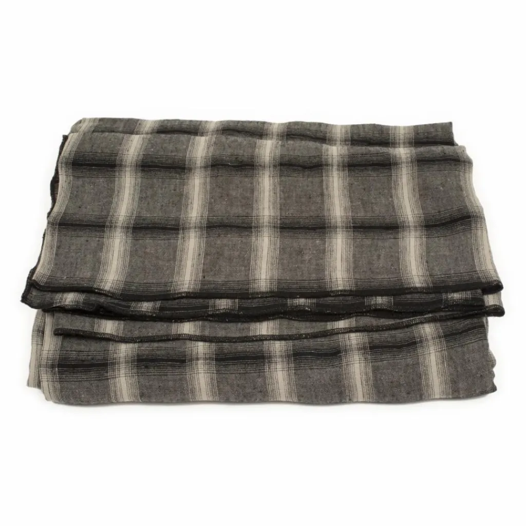 Cette nappe, au motif tartan et aux coutures apparentes, est souple et douce au toucher.