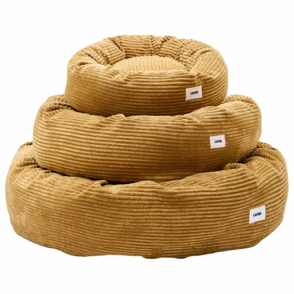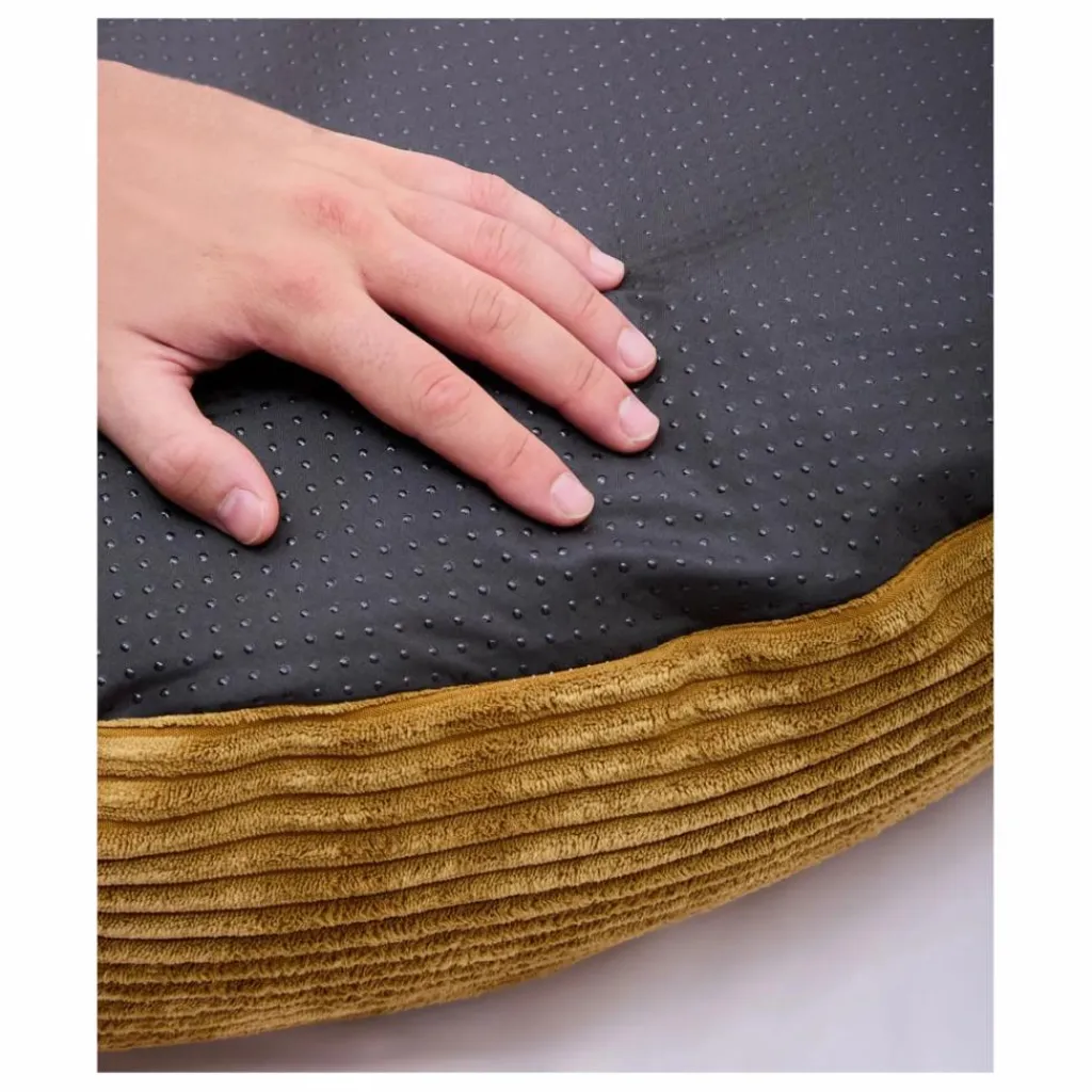 - Lit pour chien amovible et lavable, recouvert d’un tissu en velours côtelé doux et pelucheux fabriqué en Europe