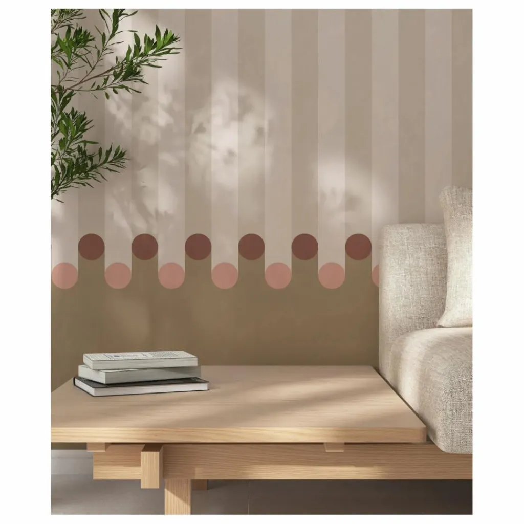 - Dans sa déclinaison beige, le papier peint Dott mise sur une esthétique douce et raffinée. Sa tonalité neutre, relevée de pois terracotta, structure l’espace sans le surcharger. Parfait pour instaurer une ambiance cosy et élégante, ce modèle s’intègre naturellement dans des intérieurs minimalistes, chaleureux ou inspirés par la nature, de la chambre au salon.