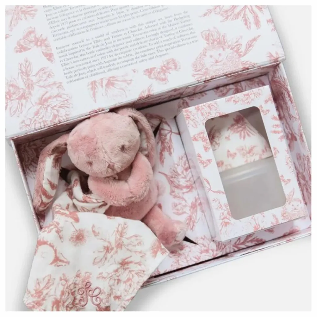 Élhée s’associe à Tartine et Chocolat, icône française de l’élégance enfantine, pour créer un coffret raffiné composé d’un biberon 150 ml et de Augustin le lapin, tous deux sublimés par le délicat motif inspiration Toile de Jouy, emblématique de la Maison Tartine et Chocolat. Cette édition spéciale est bien plus qu’un simple coffret : c’est une ode à l’enfance, un parfait mélange d’élégance et de poésie pour sublimer les moments partagés avec bébé.