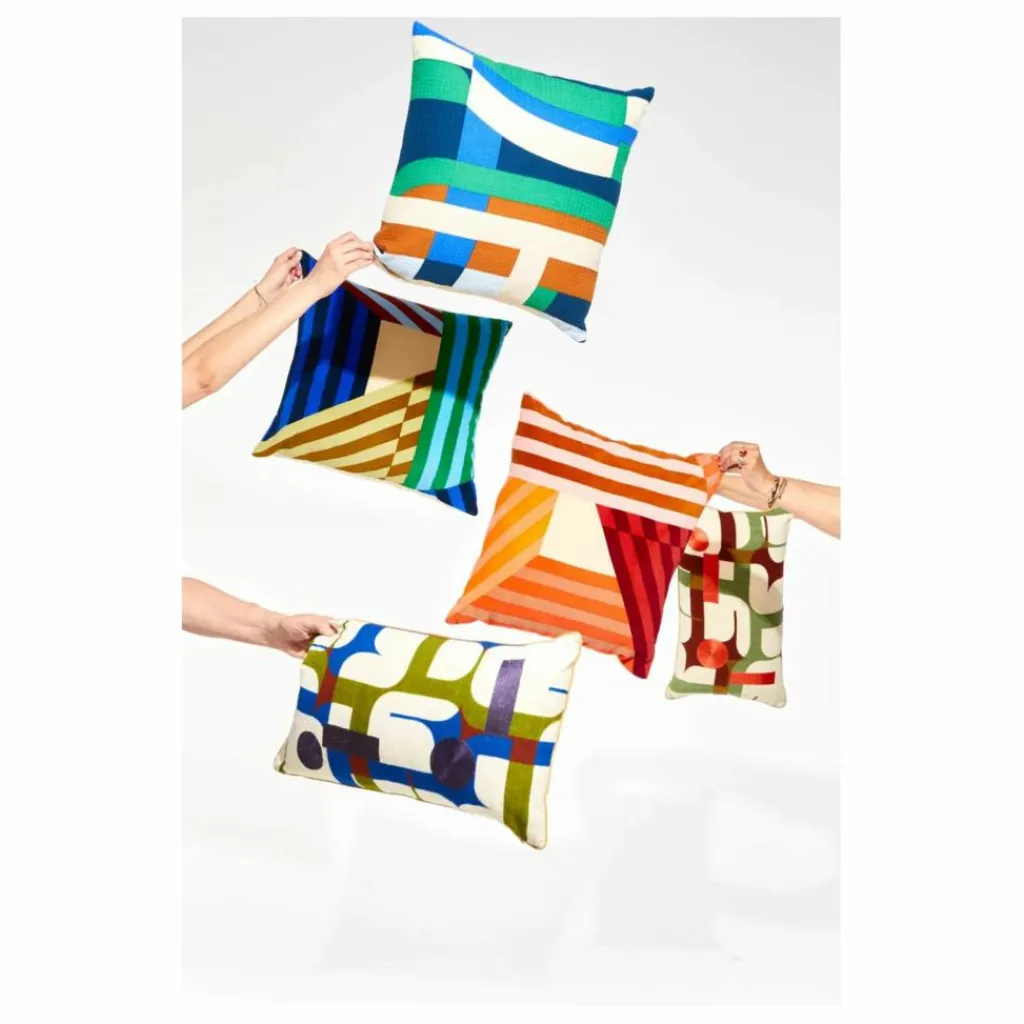 - Motif aux lignes graphiques et jeu de couleurs contrastées.