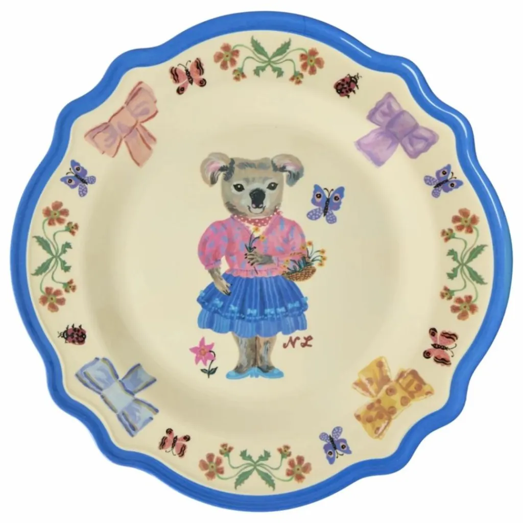 - Un partenariat enchanteur : rice s’associe à Nathalie Lété pour transformer les objets du quotidien en expériences enchanteresses, une assiette à la fois ! Cette ravissante assiette à dîner est ornée d’une bordure de style vintage et d’un charmant koala cueillant des fleurs au centre. Fabriquée en mélamine, elle est solide et parfaite pour un usage quotidien, car elle est facile à nettoyer et n’absorbe pas les couleurs ou les saveurs des aliments. Ce produit ne doit pas être utilisé au micro-ondes.