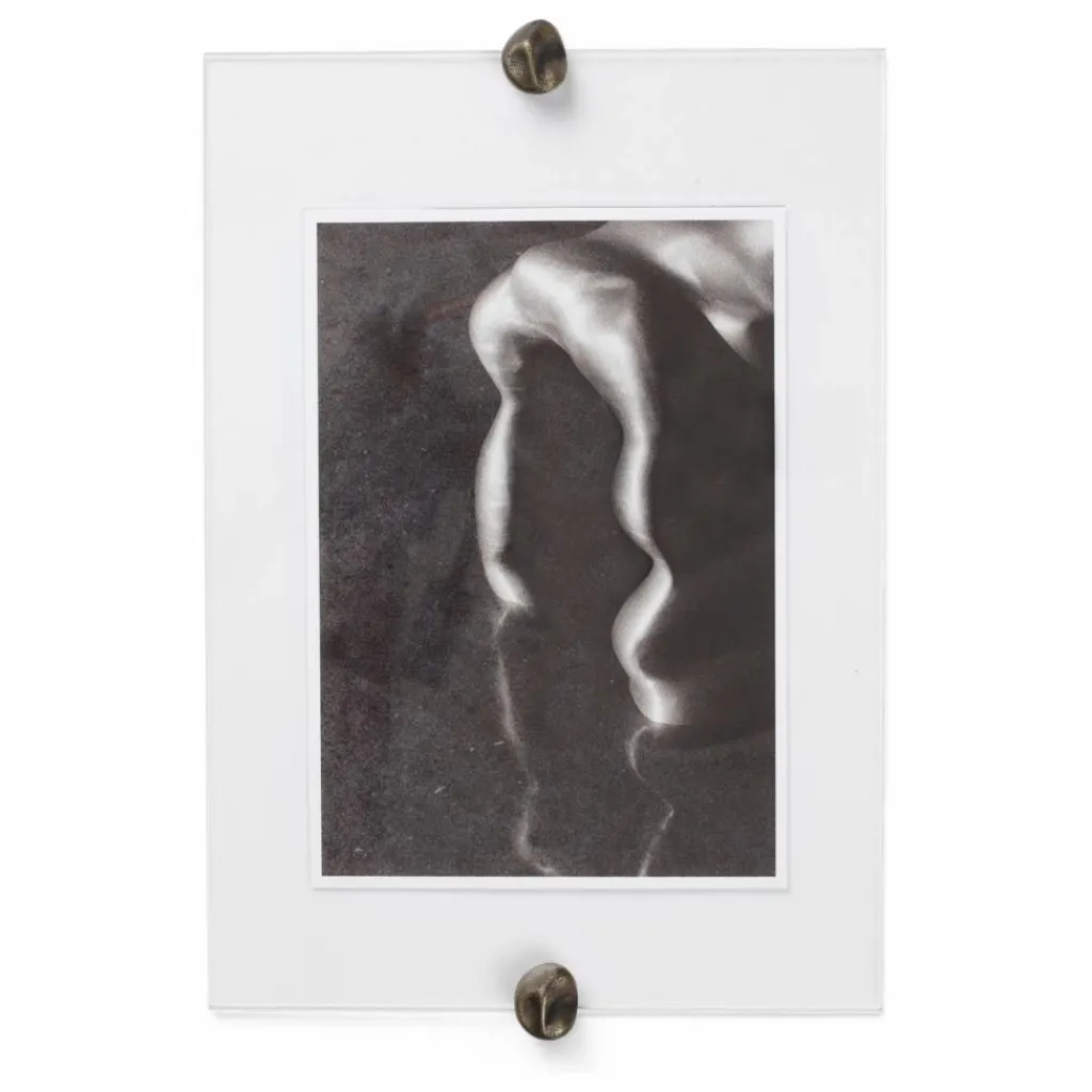 - Pour y placer la photo de votre choix, fixez simplement les deux supports en laiton sur le mur. Insérez la photo entre les deux feuilles d’acrylique, puis fixez-la en plaçant les capuchons en laiton moulé sur les supports. Votre photo est désormais élégamment encadrée.
