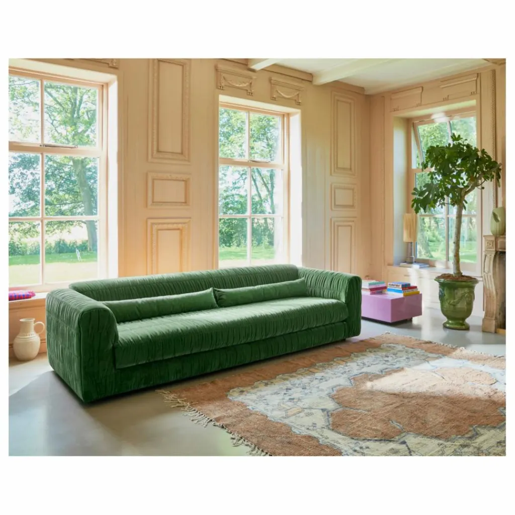 Redonnez de l’énergie à votre salon avec ce superbe canapé vert ! Ses lignes contemporaines et son tissu en velours assurent confort et élégance, et créeront une atmosphère unique pour votre intérieur.