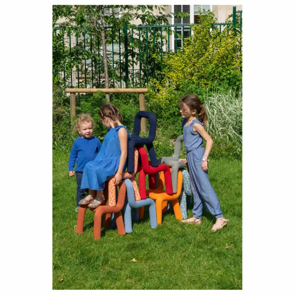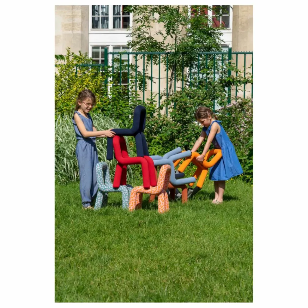 Création du collectif Big Game, la chaise bold est inspirée de la tradition de la chaise avec tube d’acier habituellement simplement utilisé pour le piètement. Ici tout en tube d’acier, la chaise est épaissie par un effet de rembourrage en mousse qui lui apporte un confort extrême. Ludique et graphique, elle se compose de deux parties tubulaires simplement imbriquées l’une dans l’autre, apportant un style à la fois épuré et fantasque.