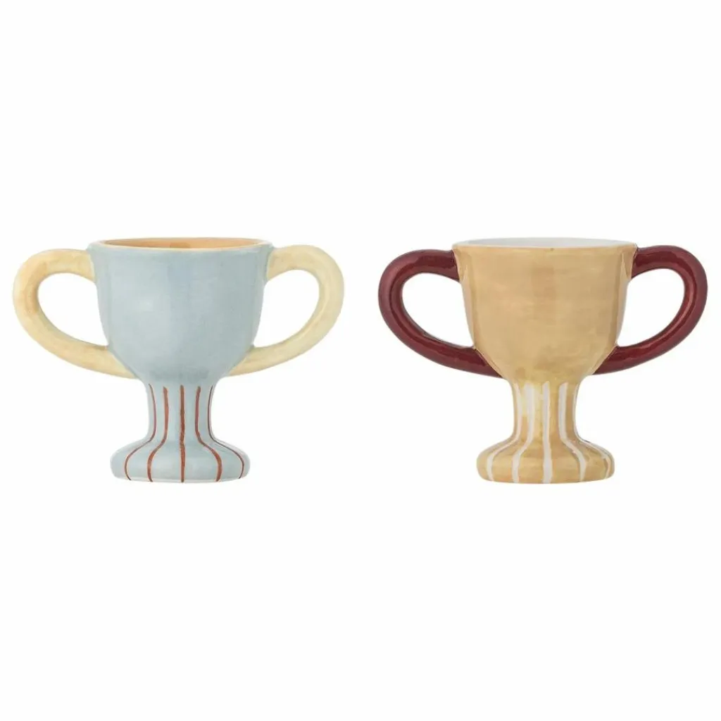- Les Coquetiers Trophy de Bloomingville MINI sont vendus par deux et en forme de petits trophées en céramique. Chacun décoré du motif “No. 1”, ils apportent une touche ludique au petit déjeuner.