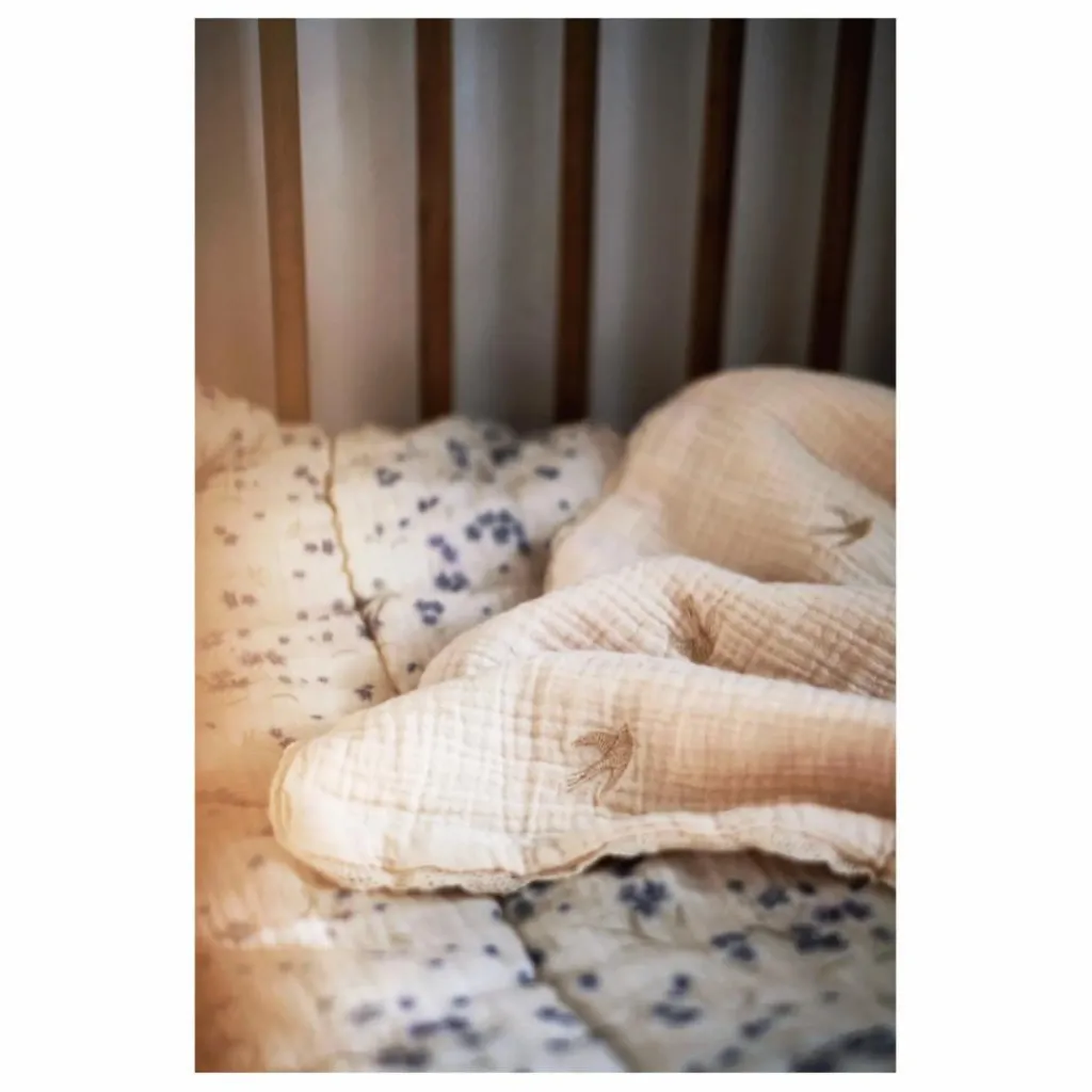 - Cette jolie couverture sera idéale pour les premiers mois de bébé. À emporter lors des balades et à disposer dans son couffin ou berceau. Des tons neutres et un motif d’une grande délicatesse.
