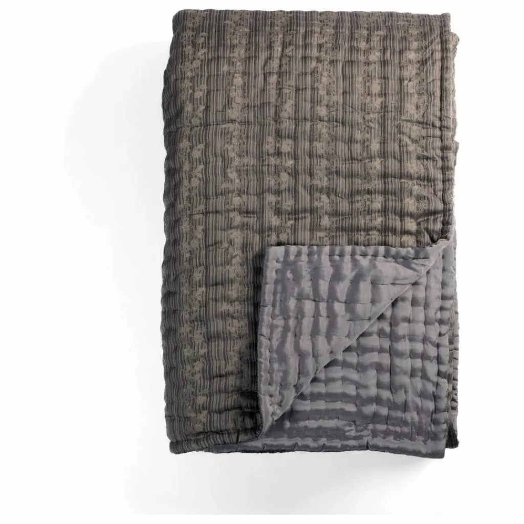 - nspiré du XVIIIe siècle, le couvre-lit / plaid Ritournelle fait courir une rayure sur laquelle viennent se superposer des fleurs. Un motif exclusif et intemporel, qui évoque les toiles à matelas. Invitez le haut de gamme dans votre lit, il vous couvrera avec délice. Plaid matelassé artisanal piqué main.