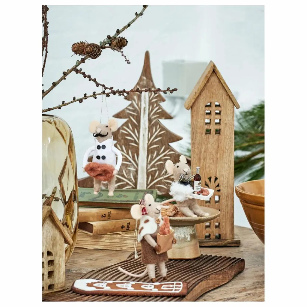 - Le Bibelot Peo de Bloomingville présente trois souris charmantes, chacune fabriquée à partir de laine feutrée et ornée de détails délicieux qui donnent vie à leurs histoires. Habillées dans des tenues adorables, ces souris ajoutent une touche douce à vos décorations de Noël. Équipées de cordons de suspension dorés, elles sont faciles à afficher sur votre arbre de Noël ou à incorporer dans un arrangement festif plus large.