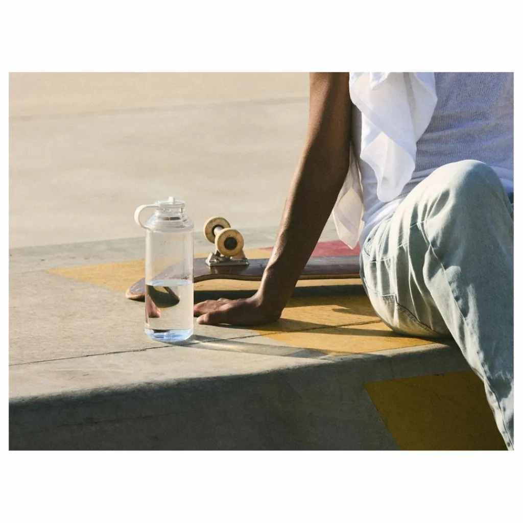- ACTIVE BOTTLE est conçu pour favoriser un mode de vie sain et durable. Fabriquée à partir de matériaux recyclés, elle est transparente comme le verre tout en étant durable. La poignée flexible permet de la transporter facilement en extérieur. Bien que légère, la bouteille offre une grande capacité. Elle est très transparente comme le verre, tout en étant durable et adaptée à un usage quotidien. Fabriquée avec plus de 50 % de matériaux recyclés certifiés. Le bec verseur de type paille permet de boire facilement d’une seule main. Le bord est arrondi, ce qui le rend agréable à porter à la bouche. La poignée tient bien dans la main. Fabriquée dans un matériau souple, elle ne blesse pas les doigts, même lorsque la bouteille est alourdie par une grande quantité de boisson à l’intérieur. Le large goulot a une structure simple, ce qui facilite le remplissage et le nettoyage. Fabriquée avec plus de 50 % de déchets plastiques récupérés. Sans BPA. L’anneau en silicone est facile à retirer et à laver.