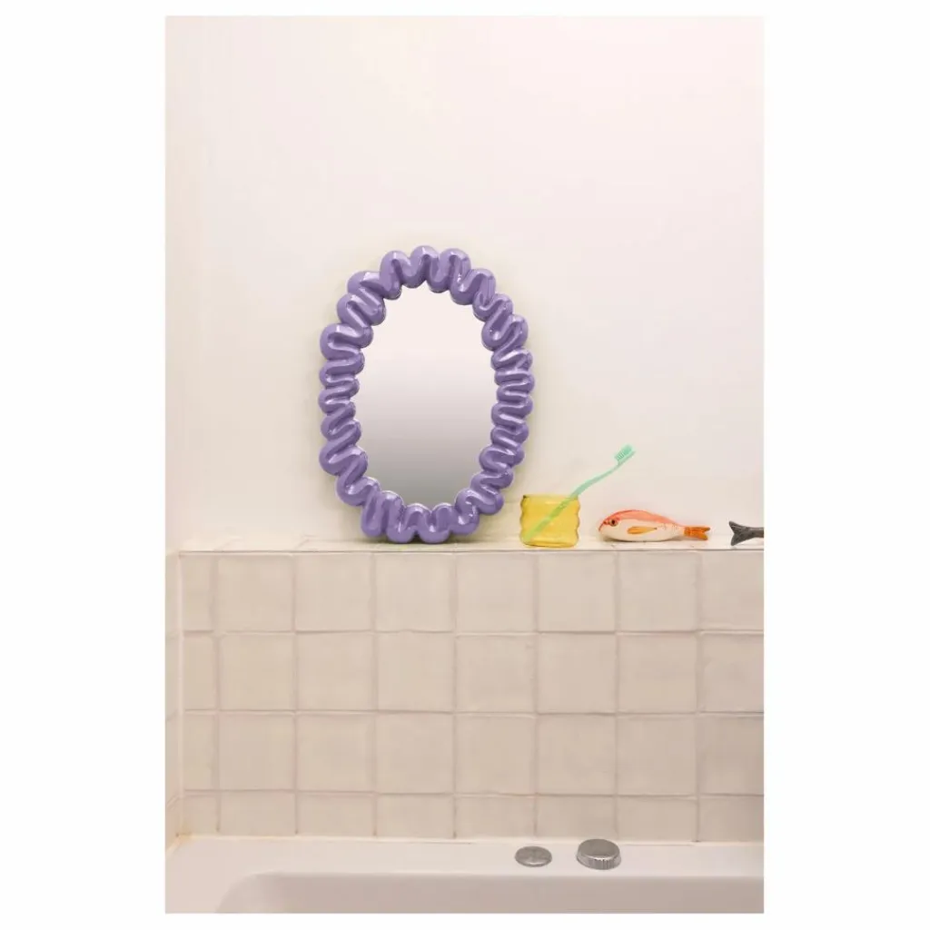 La forme irrégulière et la finition brillante donnent à ce miroir son aspect distinctif. Son cadre ovale est équipé d’un crochet à l’arrière pour fixer le miroir solidement sur votre mur.