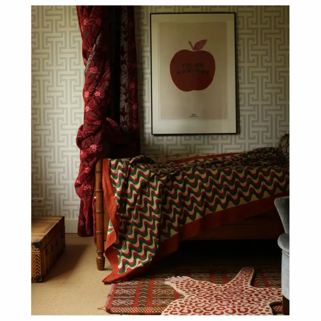 - Cette nappe, imprimée à la main, s’accompagne d’un joli sac fourre-tout assorti.