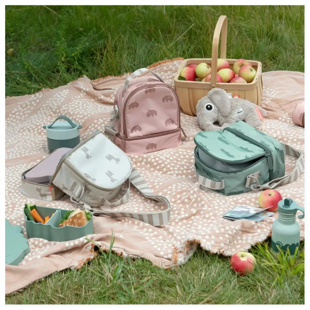- Le lunchbag Ozzo est parfait pour garder le goûter ou des boissons bien au chaud ou au frais. Il est fabriqué en 100% polyester avec un tissu isolant à l’intérieur. Ce sac est idéal pour toutes les lunch boxes et bouteilles de Done by Deer. Le sac a deux compartiments et une sangle d’épaules ajustable. Grâce à ces deux zips, il est facile à ouvrir pour un enfant. Sur l’étiquette permettant d’inscrire le nom de votre enfant, Ozzo invite ce dernier à danser avec lui. Le sac isotherme est dans un joli rose tout imprimé de Ozzo, l’hippopotame. Les sangles ont les rayures signature de Done by Deer en beige. Le tissu durable est résistant à l’eau et facile à nettoyer avec un chiffon humide.
