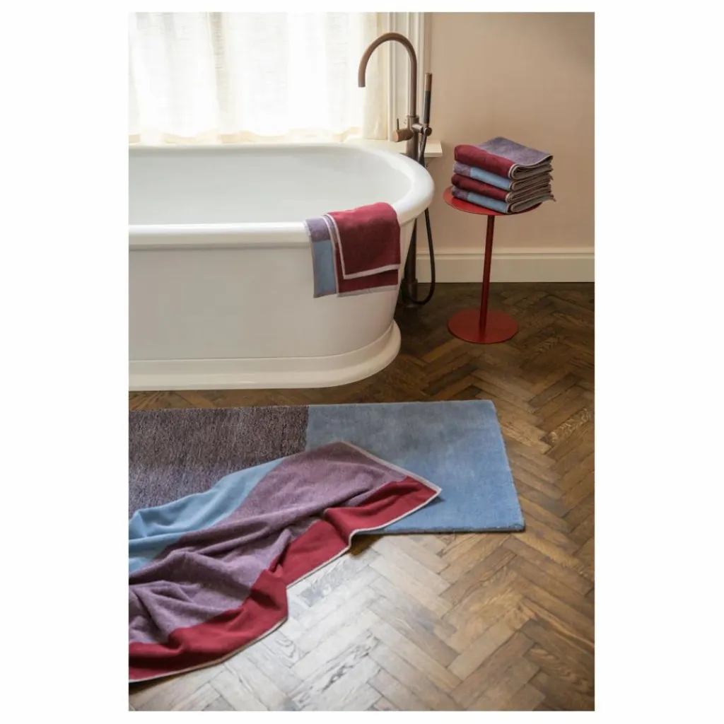 La collection de linge de bain d’inspiration graphique propose des duos de serviettes aux rayures horizontales et verticales.