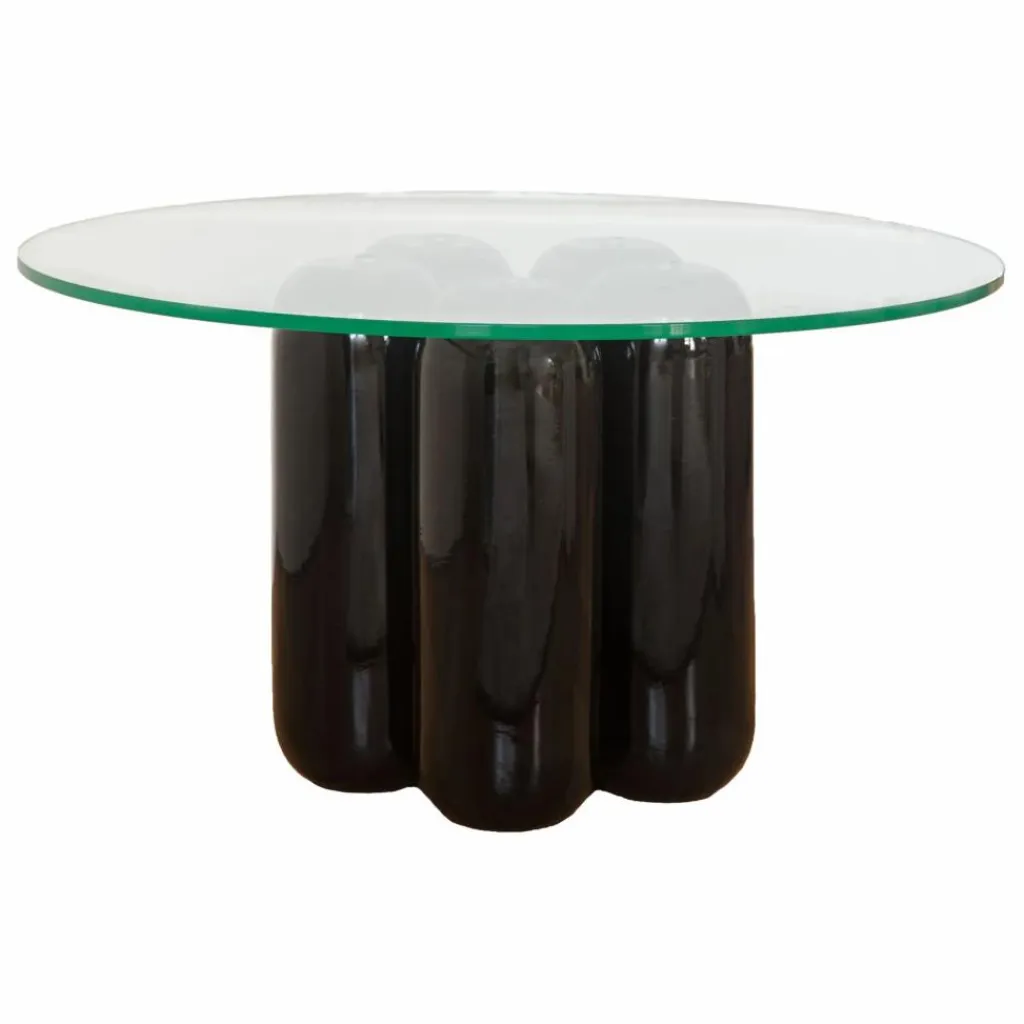 Un grand nombre de combinaisons est possible ! Chaque pied en céramique est à associer avec le plateau de votre choix ; le plateau en verre pour de la transparence et légèreté, le plateau responsable à base de volants de badminton recyclés pour de l’authenticité.