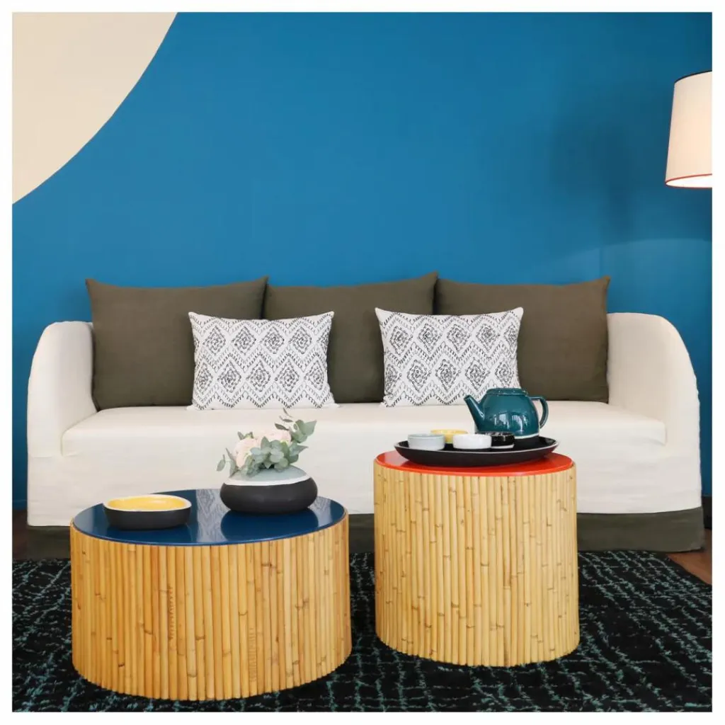 Inspirée par la French Riviera des années 20, ce set se compose de deux tables basses aux dimensions et couleurs différentes qui forment un ensemble graphique. Ces tables mélangent matières naturelles et couleurs tendances.