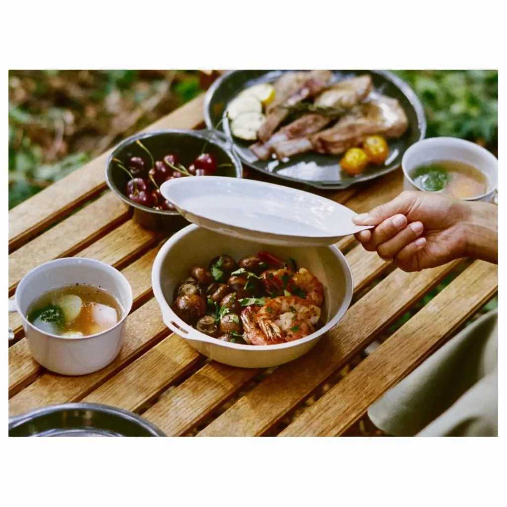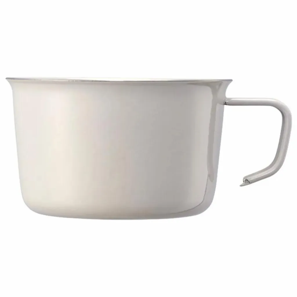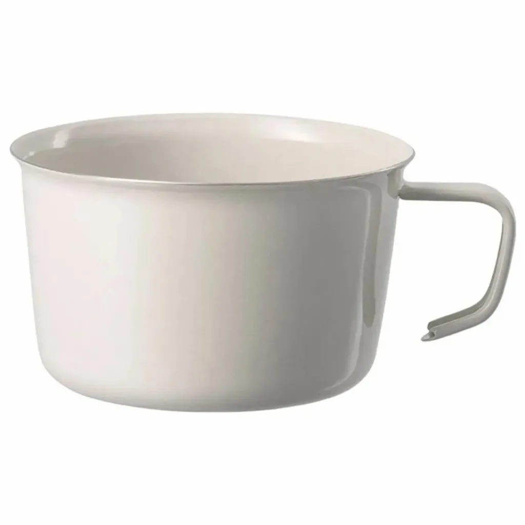 - Avec son ouverture basse et large, elle est de bonne taille pour les soupes. Le bord fin est lisse et confortable sur la bouche, ce qui permet de l’utiliser non seulement à l’extérieur, mais aussi à l’intérieur. La fente permet de la suspendre à des crochets pour faciliter le séchage. Contrairement à la vaisselle en émail typique dont les bords sont recourbés, le design empêche l’eau de s’accumuler, ce qui accélère le séchage.