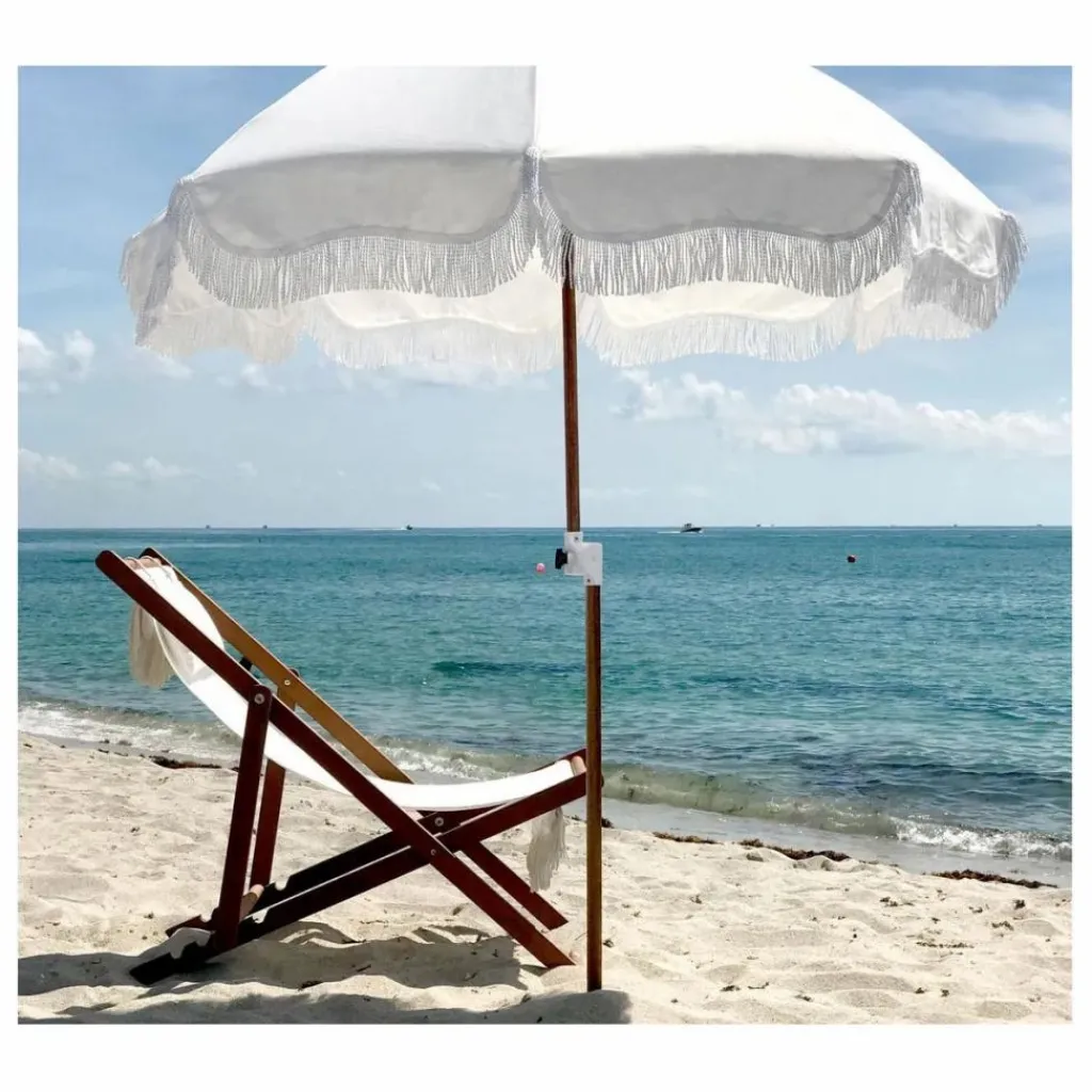 - Bois, Acier inoxydable, Toile, Franges : Coton