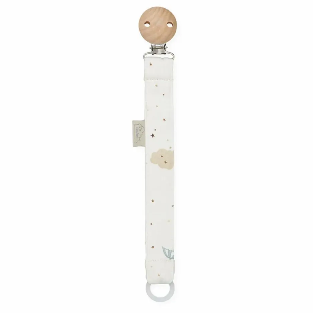- Tissu : Coton biologique, Anneaux : Caoutchouc, Attache : Bois, Métal