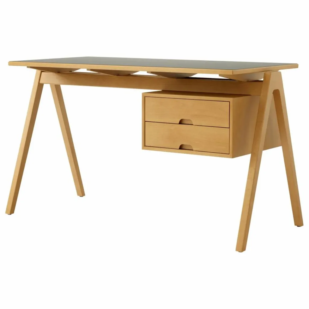 - Influencé par la notion de design flexible, le bureau Daystak met en évidence l’habileté de Robin Day à marier la forme et l’utilité. L’ajout d’un tiroir à queue d’aronde visible à la table Daystak élargit le potentiel fonctionnel du design pour créer un bureau qui incarne l’objectif créatif singulier de Day. La boîte à tiroirs peut être commandée séparément et placée d’un côté ou de l’autre de la table.