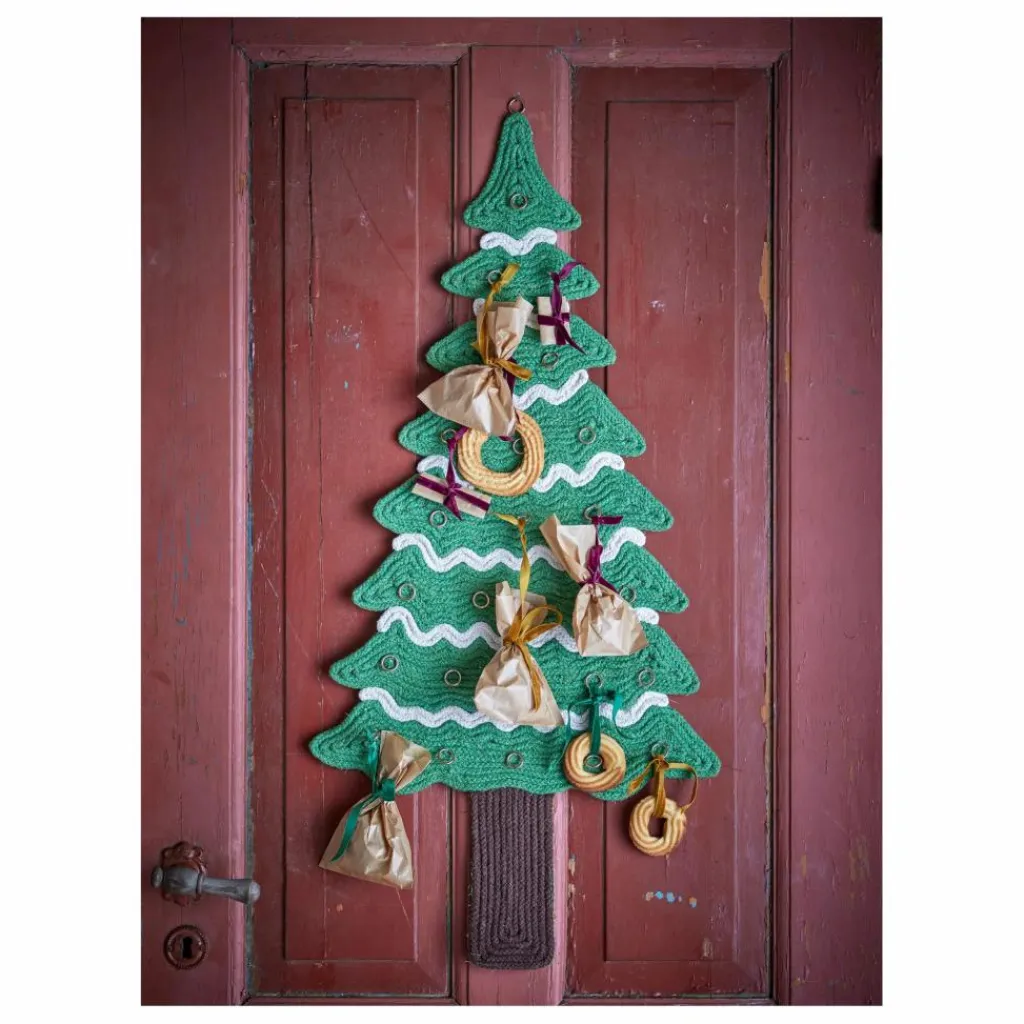 - Le Calendrier Douglas de Bloomingville est tissé en forme d’arbre de Noël et orné de 24 anneaux avec une finition dorée. Utilisez le cintre à l’arrière pour le suspendre et créez un compte à rebours créatif jusqu’à Noël en décorant les 24 anneaux avec de petits cadeaux. Le calendrier peut également être utilisé à plat comme décoration sur la table de Noël ou comme une belle décoration murale en soi.