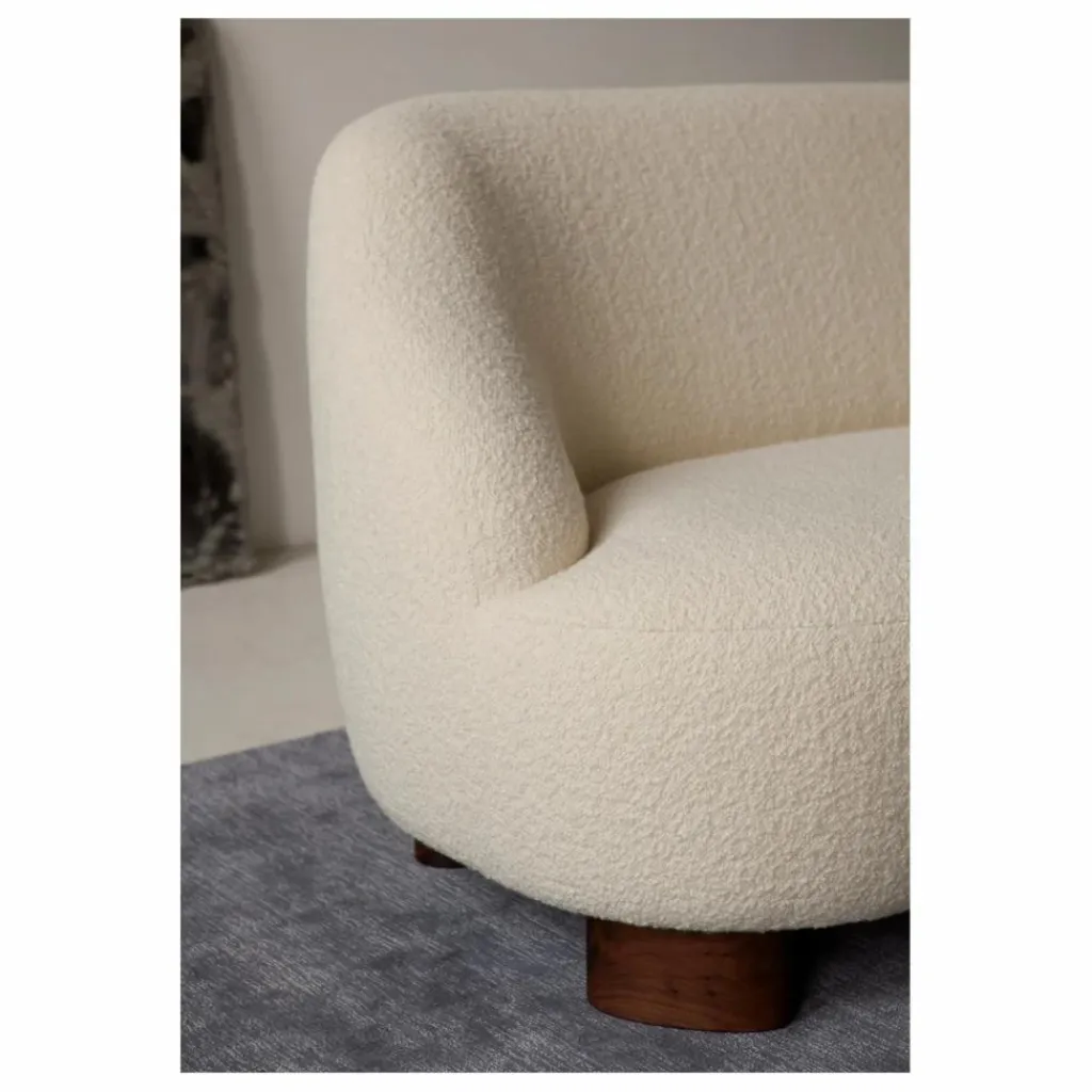 - Le superbe canapé Margas LC3 a été imaginé par la designer Louise Liljencrantz. Il présente un look élégant et chaleureux. Le cadre est fabriqué en hêtre massif et en contreplaqué, puis garni de mousse HR et de ouate de polyester. Les pieds en bois sont tournés et fraisés avec soin. Le tissu bouclé rassemble laine et viscose dans une texture irrégulière de nœuds et de boucles, offrant un toucher doux et dense.