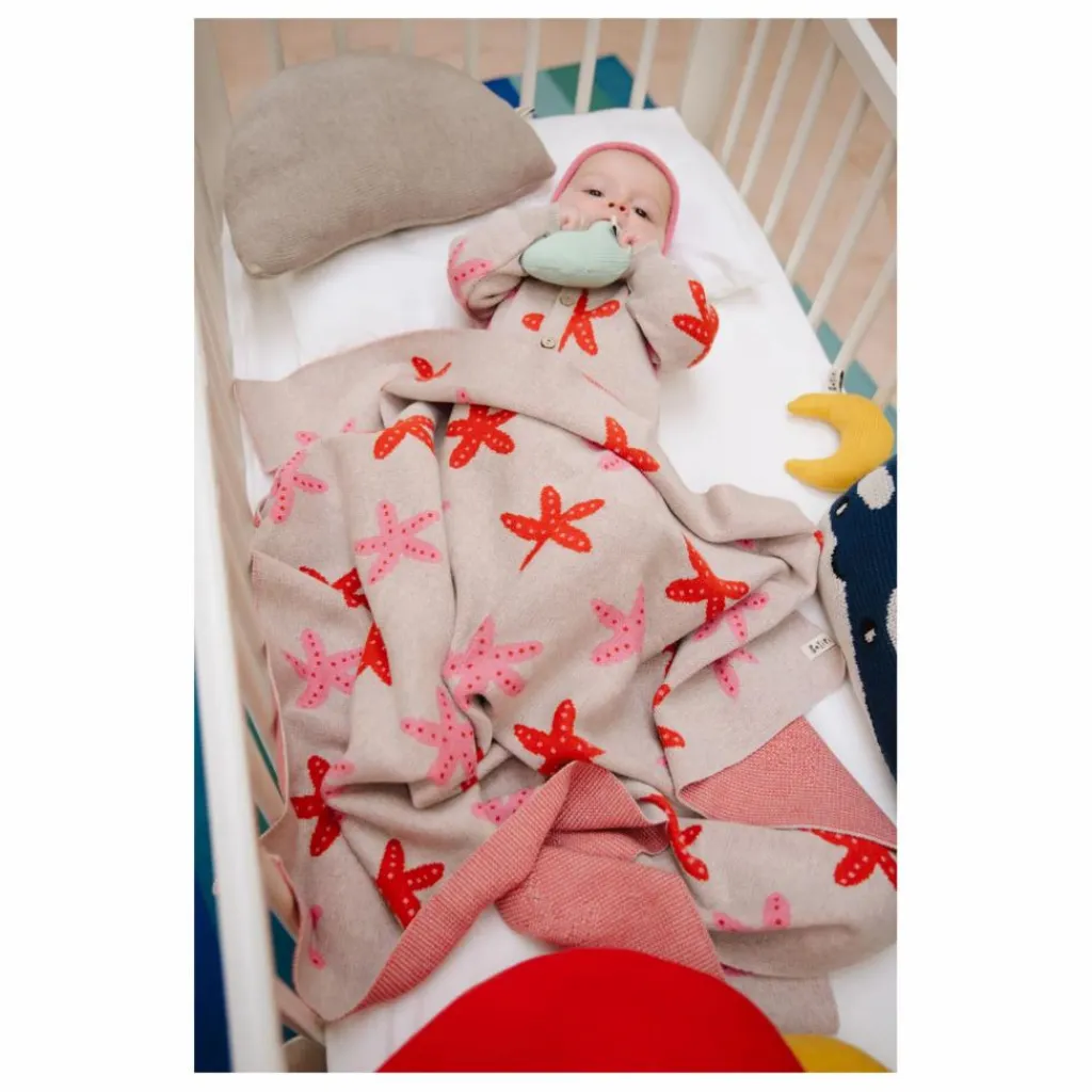 - Ces douces couvertures tricotées peuvent être utilisées à tout moment et appréciées des deux côtés 🙂 Tricotées avec le fil de coton biologique le plus doux, elles sont fraîches et douillettes. Associez-les à nos combinaisons pour bébés et créez le cadeau idéal !