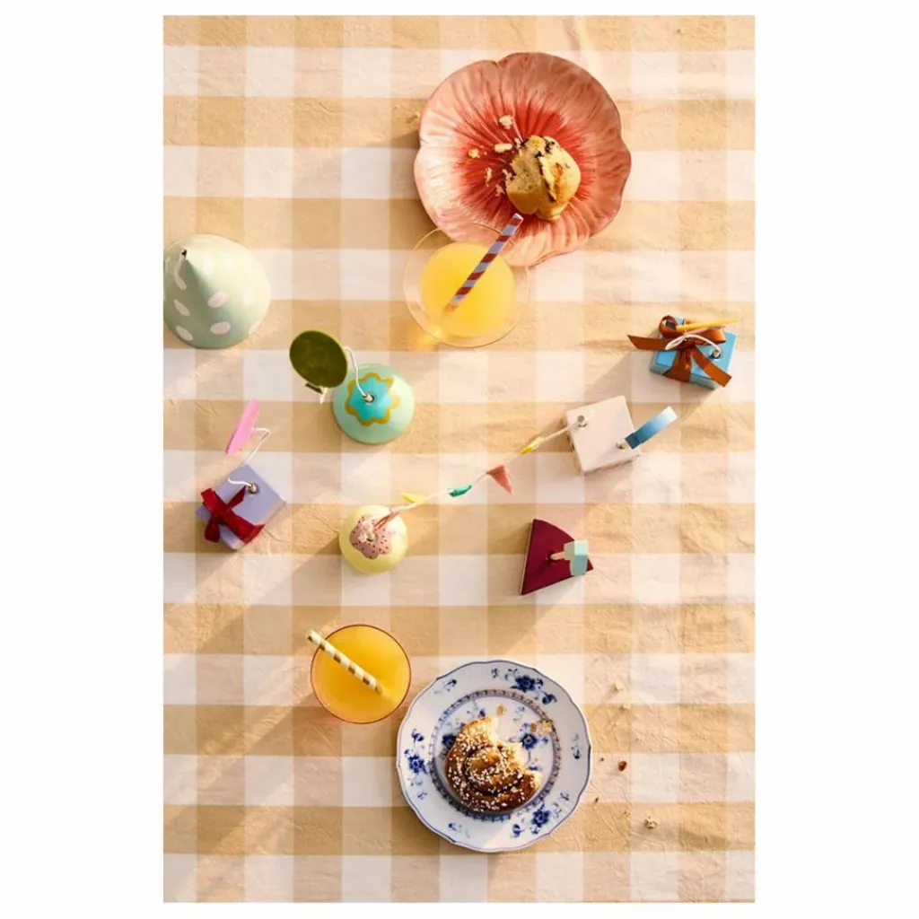 Deux ballons en feutre montés sur des fils métalliques ajoutent une touche décorative supplémentaire. Conçu pour être polyvalent, ce set offre une façon amusante de célébrer les anniversaires d’une manière simple et personnalisable.