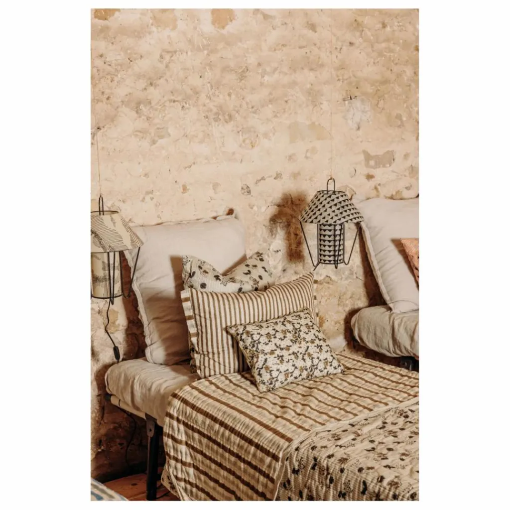 - Esprit Liberty ou rayures signature ? Bordé d’un ruban ondulé, le coussin Astre va insuffler un charme printanier à votre intérieur. Fabrication artisanale au block print.