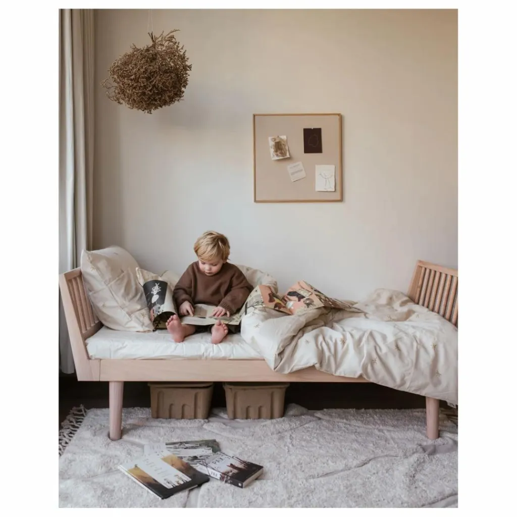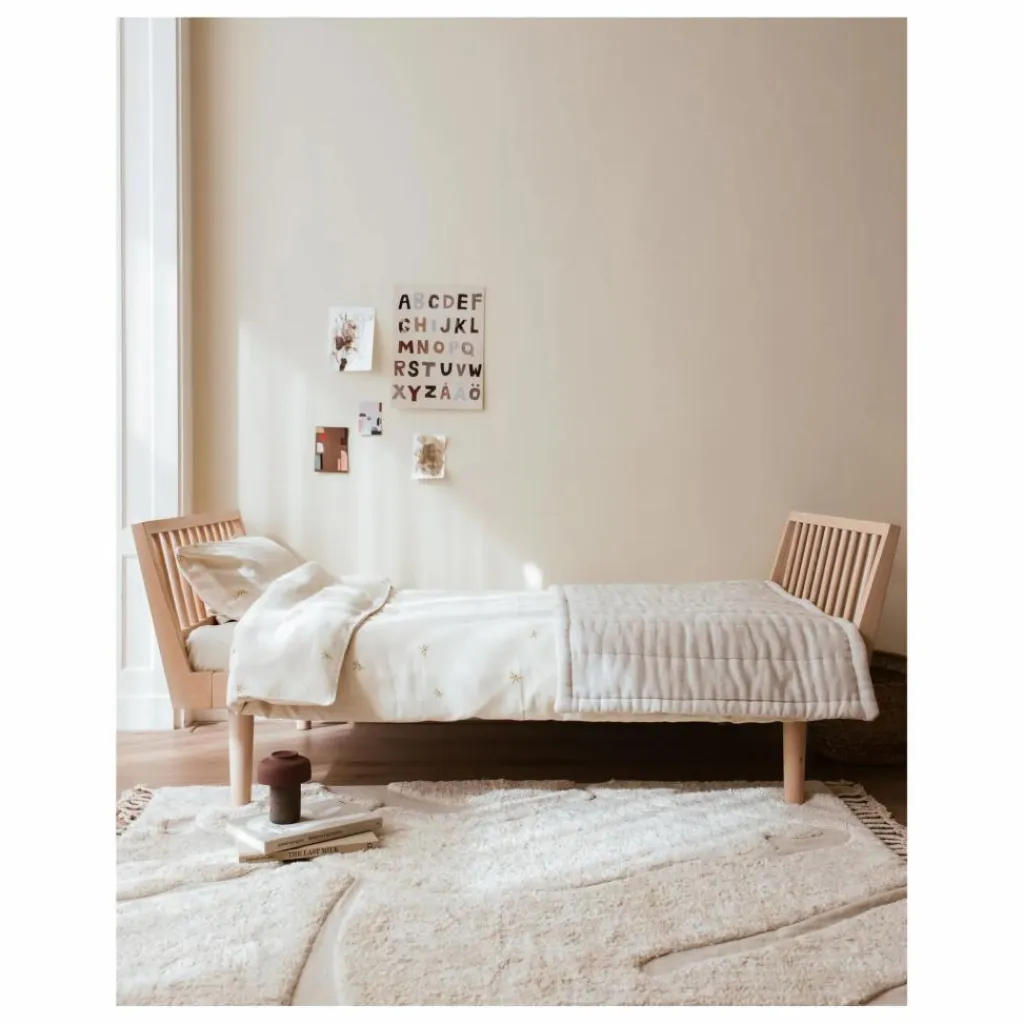 - Ce design innovant et intemporel est fabriqué en chêne massif, ce qui lui confère un magnifique aspect nordique. La haute qualité de ce matériau garantit une durée de vie longue et durable. Les têtes de lit sont ergonomiques et il est confortable de s’y appuyer pour lire un livre ou surfer sur sa tablette, ce qui crée l’illusion d’un canapé. Les têtes de lit peuvent être retirées et les extrémités peuvent être fermées avec des pièces supplémentaires, transformant ainsi le lit en lit de jour. En achetant de nouvelles longueurs, l’édition junior peut être élargie au fur et à mesure que l’enfant grandit. Dans ce design, KAS Kopenhagen a donné la priorité à la création de meubles fonctionnels qui s’adressent à un large public et qui peuvent être utilisés partout : dans la chambre d’enfant comme lit, dans le salon, le bureau ou la maison de campagne comme lit de jour. Le lit Eli permet de jouer avec différents styles d’intérieur. Les pieds en forme de cône et les vis invincibles sont les caractéristiques de la signature de KAS Kopenhagens.