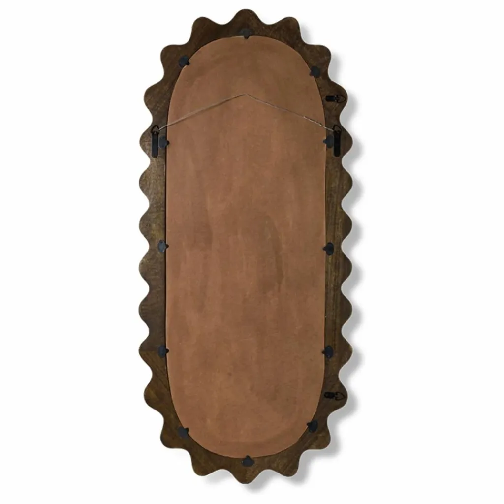 - Encadré de bois teinté foncé avec des détails striés ludiques, ce miroir ovale apporte texture et profondeur à votre mur. Qu’il soit accroché verticalement ou horizontalement, il offre une vision moderne de l’artisanat classique – en trouvant l’équilibre parfait entre un design épuré et l’expression créative.