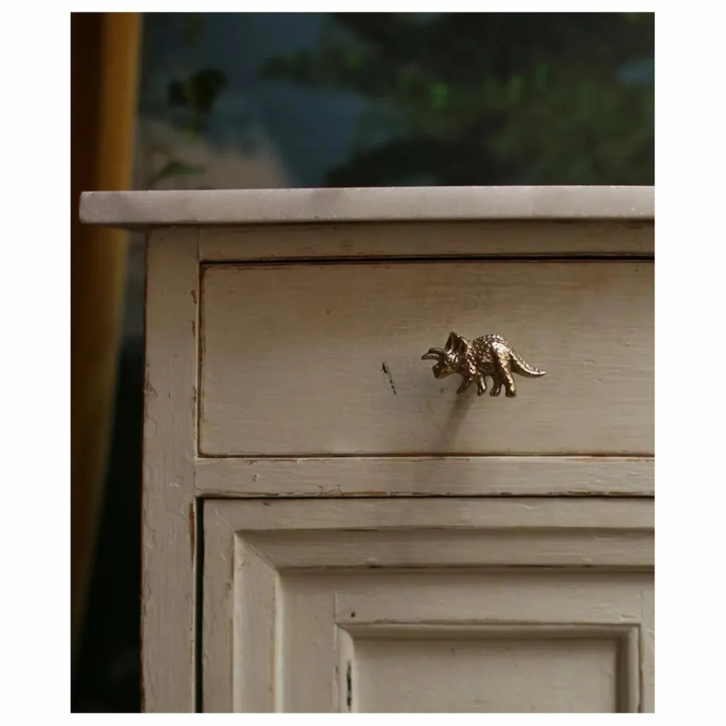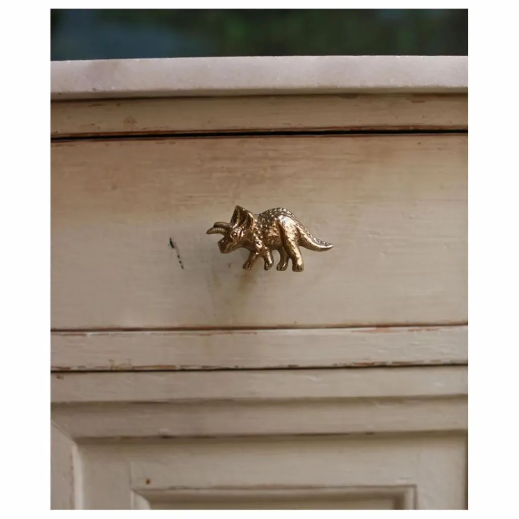 Découvrez le Bouton de Tiroir Dinosaure Triceratop de notre collection de boutons en laiton. Cette pièce unique, 100 % faite à la main par notre équipe en Inde, est fabriquée en laiton recyclé et présente une finition dorée brillante. Le Bouton de Tiroir Dinosaure Triceratop apporte à la fois style et fonctionnalité à votre maison, parfait comme bouton de tiroir, bouton de meuble ou poignée. Rafraîchissez vos meubles avec ce bouton facile à installer et ajoutez-leur personnalité et charme sans effort.