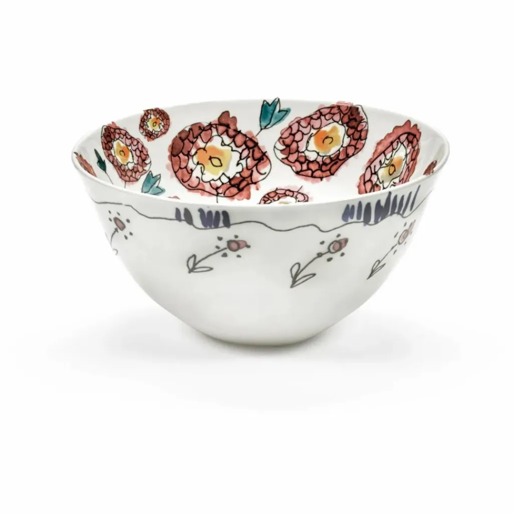 En collaboration avec Serax, la maison de mode italienne Marni a lancé un élégant service en porcelaine de 120 pièces, qui célèbre l’esprit artistique de la marque. Le motif floral inspiré de la nature est signé Francesco Rossi, le directeur artistique de Marni. Il est décalqué sur la porcelaine fine, avant d’y apposer une glaçure pour le rendre résistant à l’usure. Les formes légèrement asymétriques des assiettes, bols, tasses, plats et théières accentuent la finition manuelle et la qualité de la porcelaine.