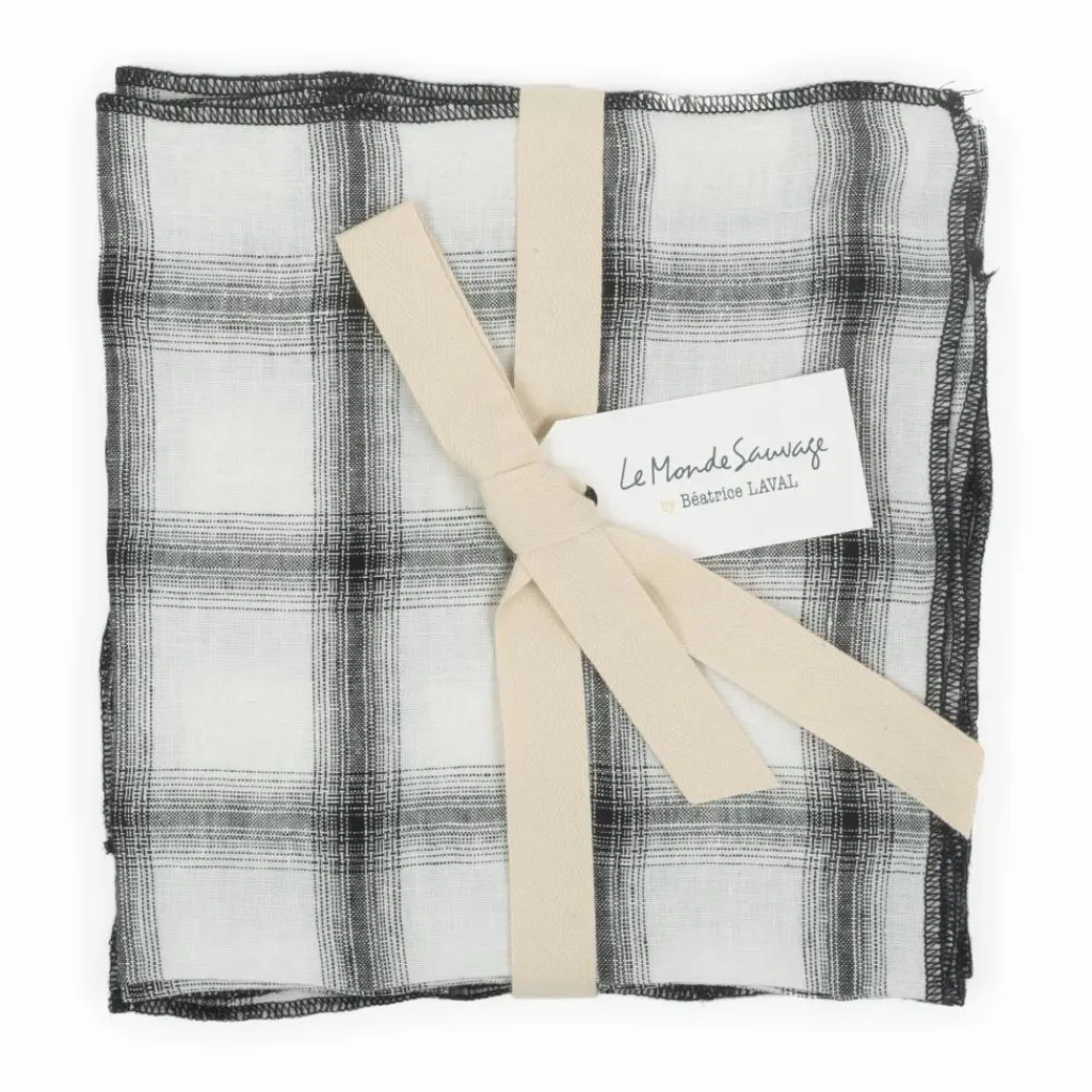 - Lot de 4 serviettes de table motif tartan. Finition coutures apparentes.