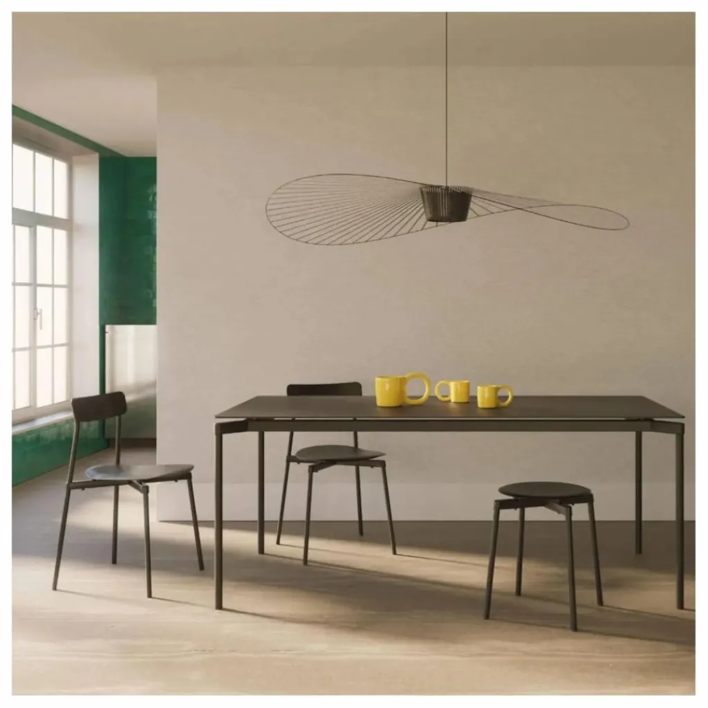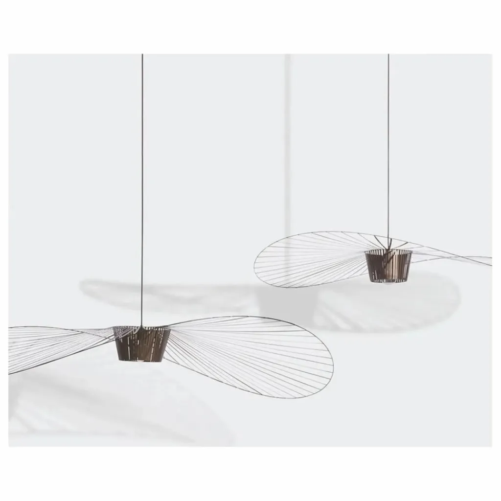 Vertigo est une « lampe cabane », selon les termes mêmes de son designer ; à la fois aérienne et graphique, elle s’adapte aux grands volumes comme aux petits, où elle recrée un espace propre et intime. Structure ultralégère en fibre de verre, mise en tension par des rubans polyuréthanes au toucher velouté, cette suspension exerce une vraie fascination quand elle s’anime et prend vie au grè des courants d’air.