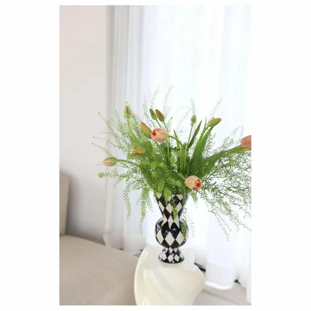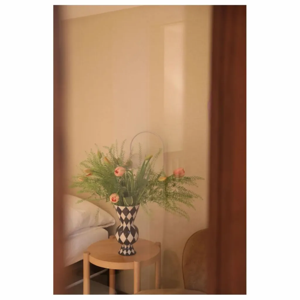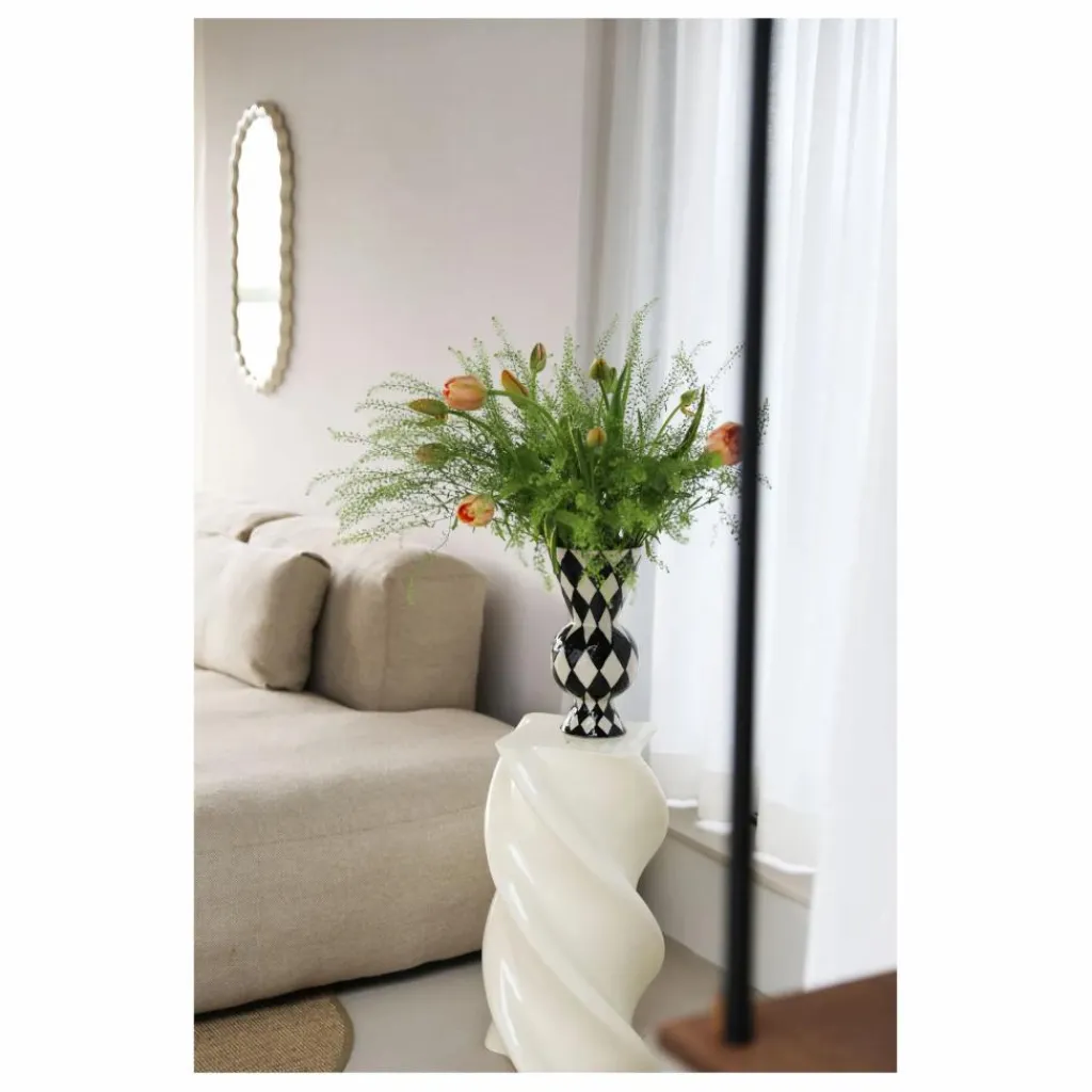 - Voici notre vase rhombique peint à la main, fabriqué en argile et débordant des formes ludiques et des couleurs vives des bonbons ! Il ajoute une touche de gaieté qui se retrouve dans toute notre collection.