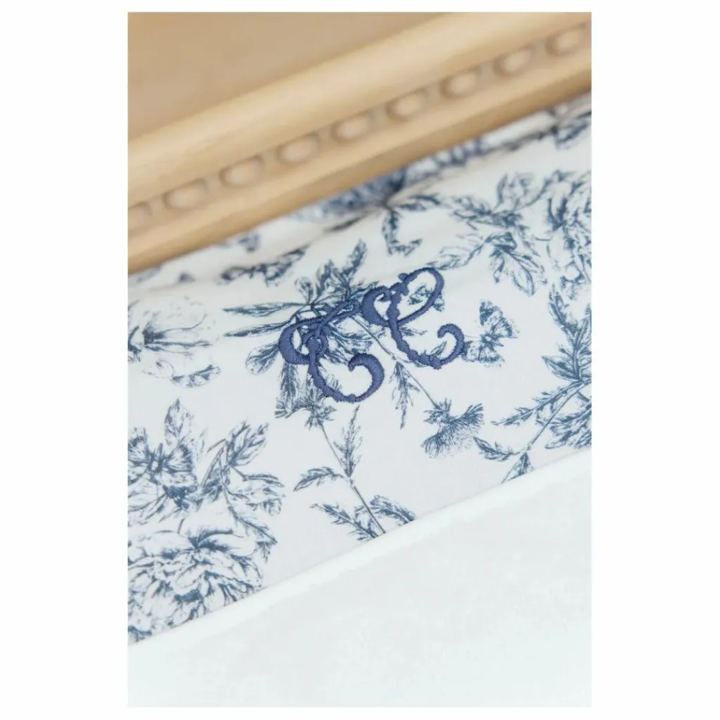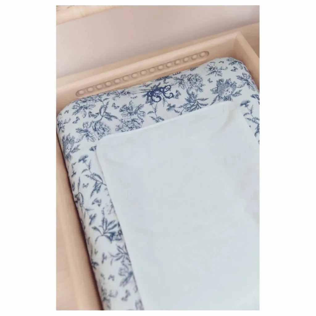 - Housse de matelas à langer imprimé Toile de Jouy bleu, en coton lange.
