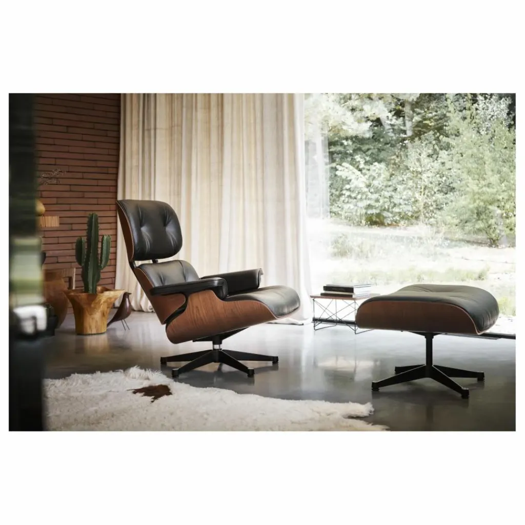 - Détails : Assise en cuir, Équipé de patins de feutre pour sols durs, Siège :, Piètement cinq branches pivotant, Ottoman :, Piètement quatre branches fixe