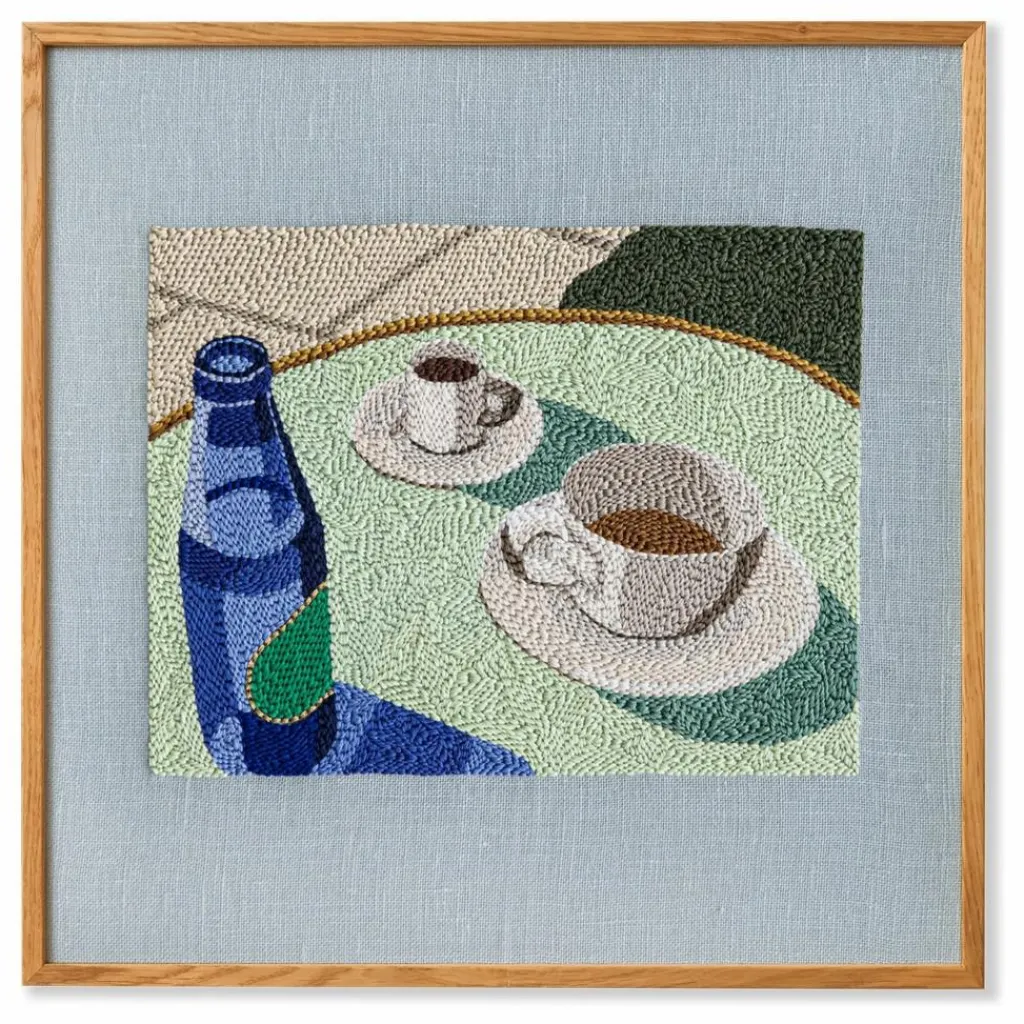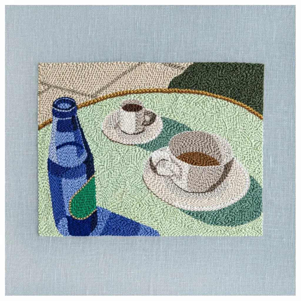 - Avec sa première collection pour Paper Collective, Adrienna Matzeg capture l’essence des après-midi chauds, en réfléchissant à la connexion et à la joie qui découlent du partage de boissons et d’en-cas avec d’autres. Jet Lag in Lisbon transforme ses photographies en broderies complexes, la composition évoquant une nostalgie onirique qui préserve ses instantanés sous forme de textile.