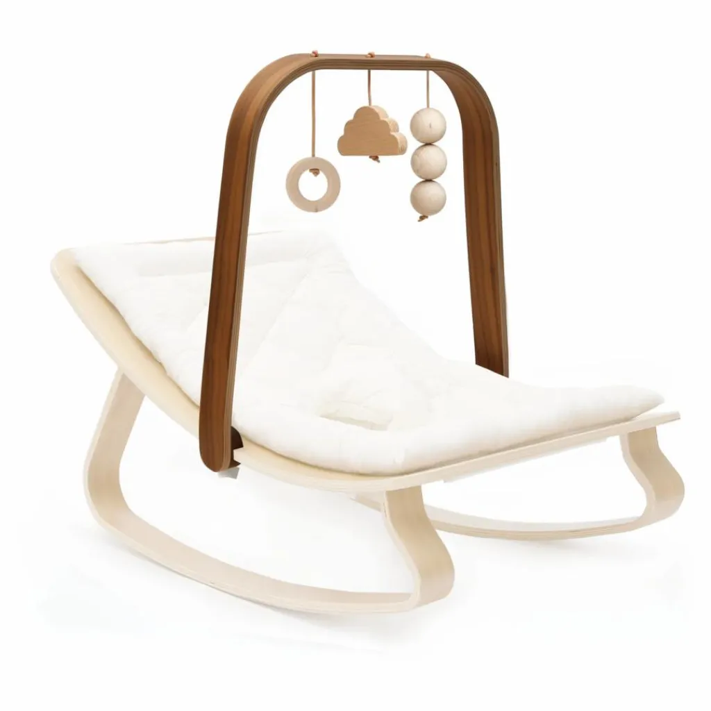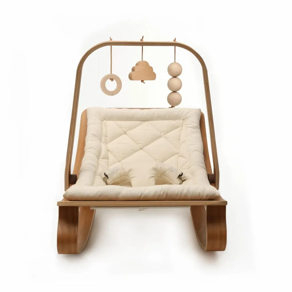 Votre tout petit pourra s’amuser des heures dans son transat grâce à cette arche, ornée de jouets en bois.
